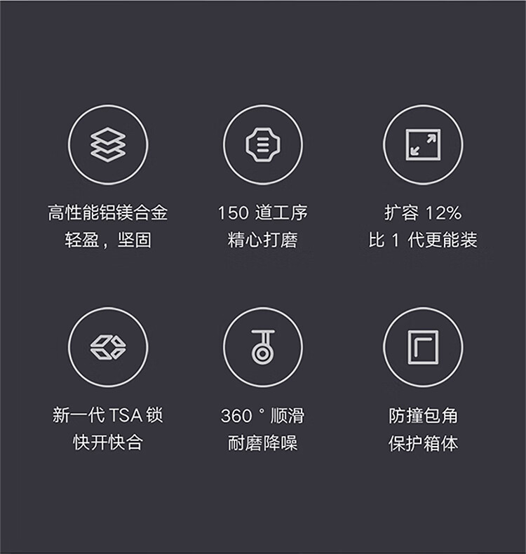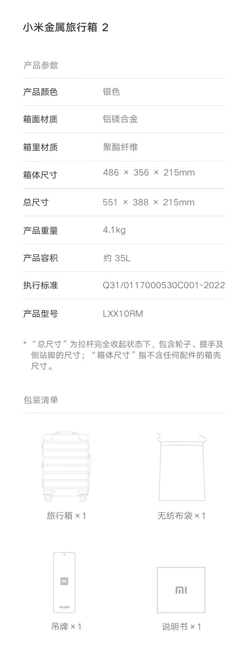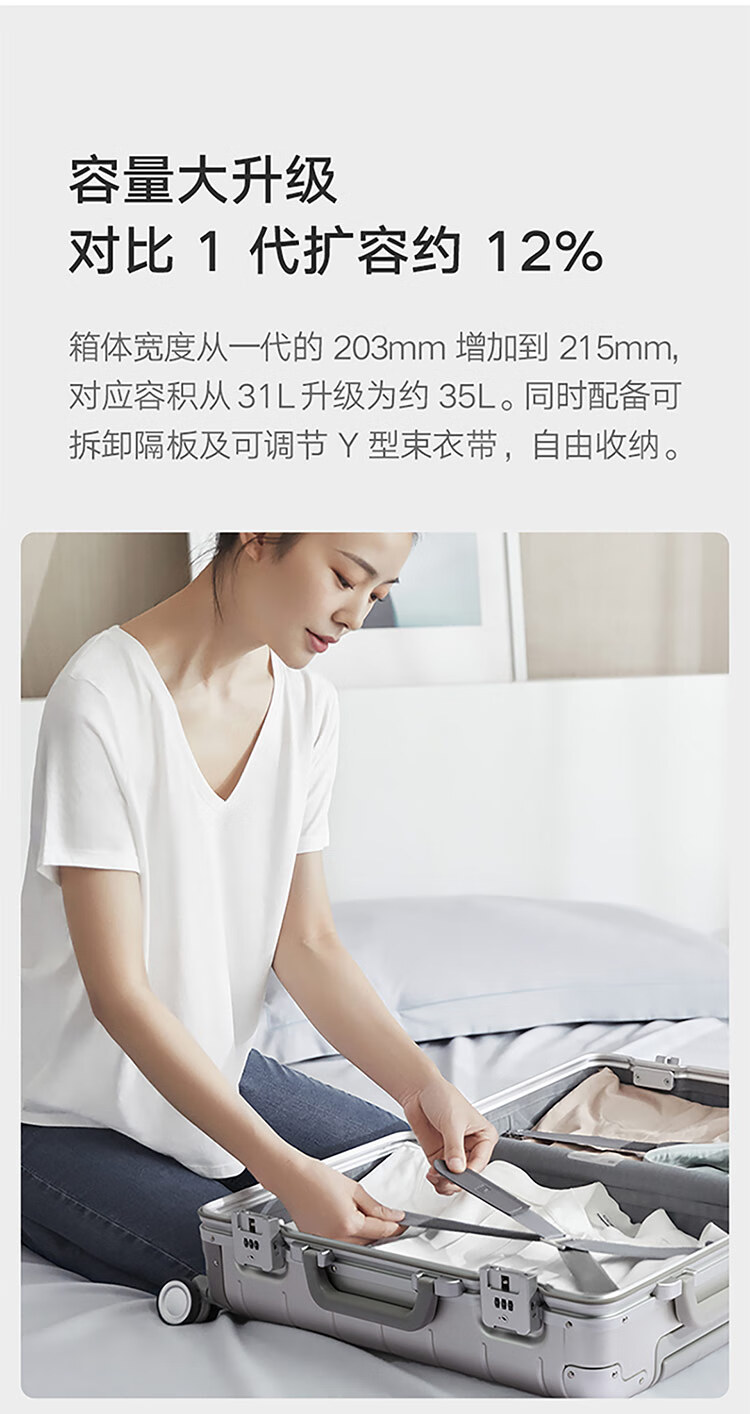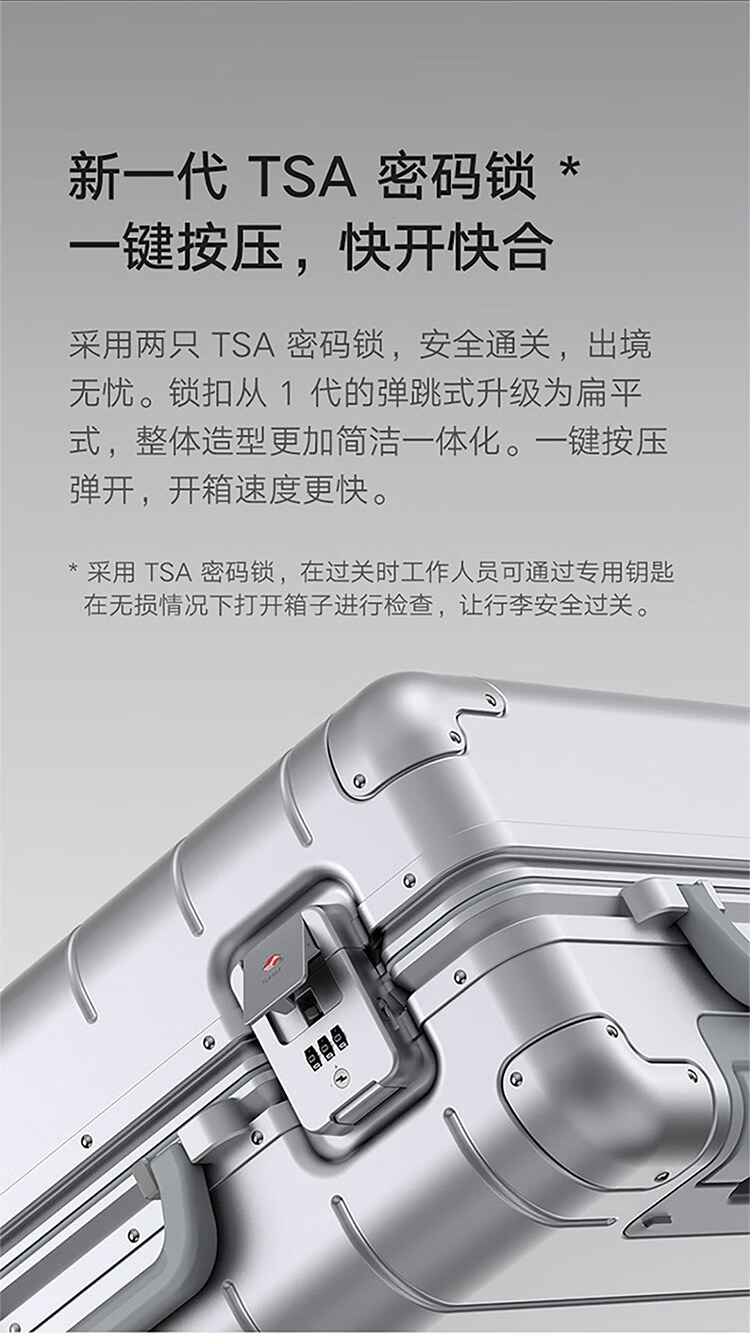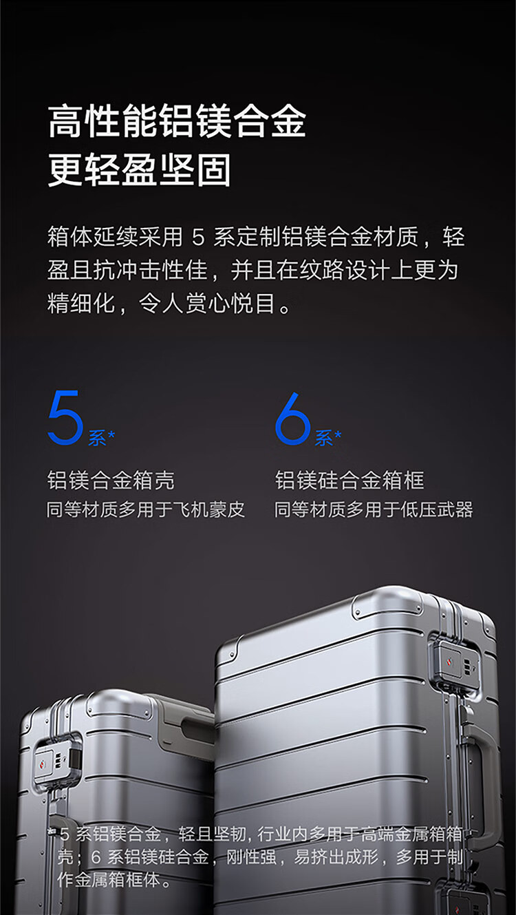 商品名称:小米 行李箱铝镁合金拉杆箱 20英寸 551 x 388 x 215mm