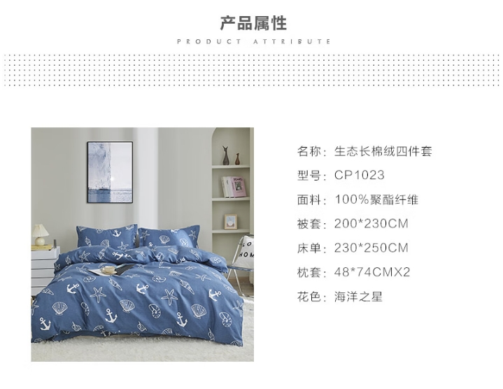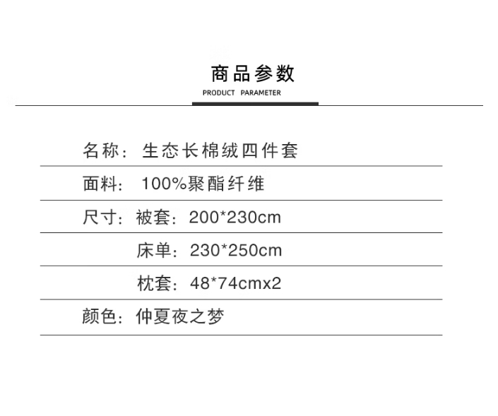 商品名称:洁丽雅 生态长棉绒四件套 200*230cm CP1023