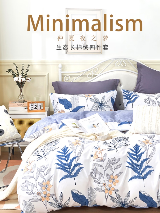 洁丽雅 生态长棉绒四件套 200*230cm CP1023