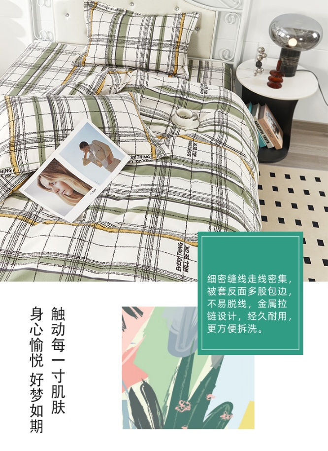 洁丽雅 臻品时尚四件套 200*230cm 英伦-绿/秋实 CP1025