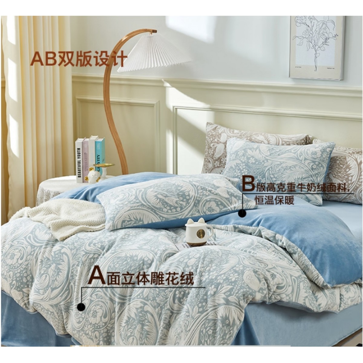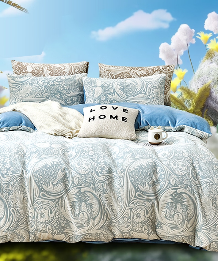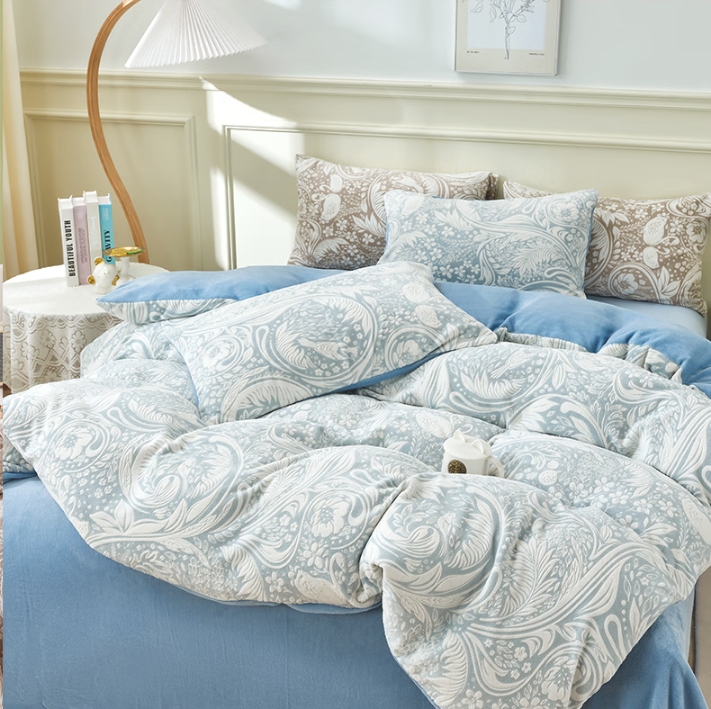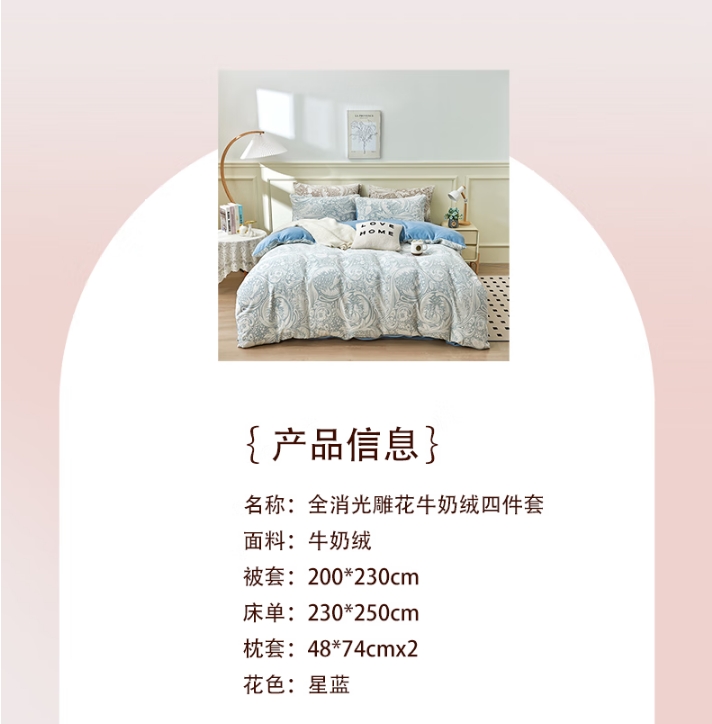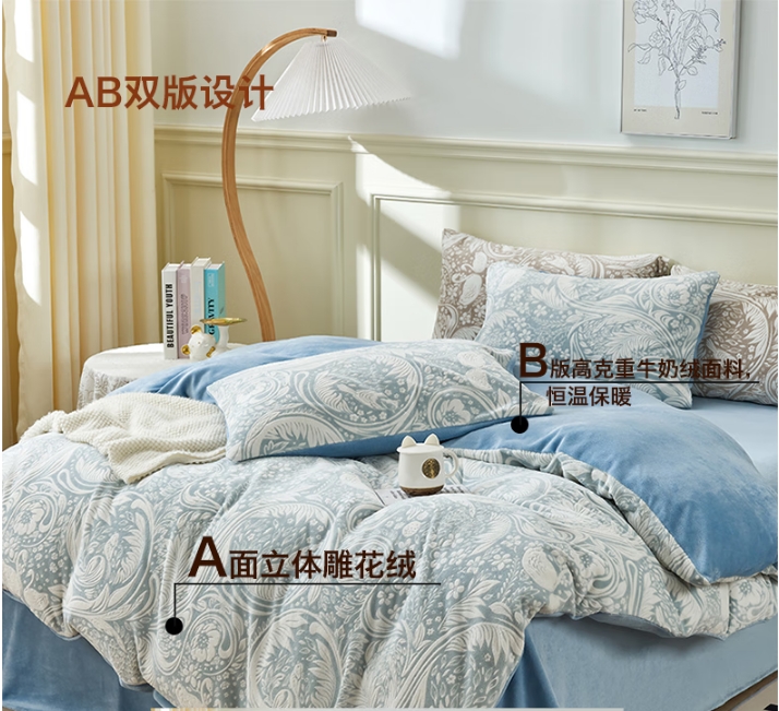 全消光雕花牛奶绒四件套