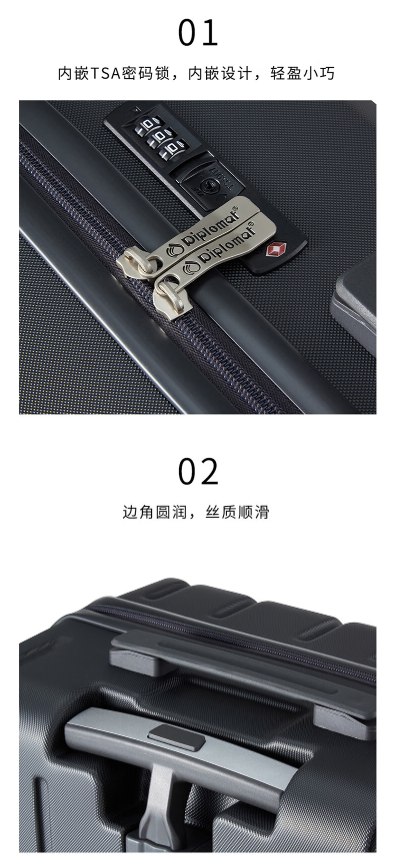 Diplomat外交官 拉杆箱 350*230*570mm 20英寸 HM-61162-1( 儒雅灰) HM-61162-2 ( 星际蓝 )