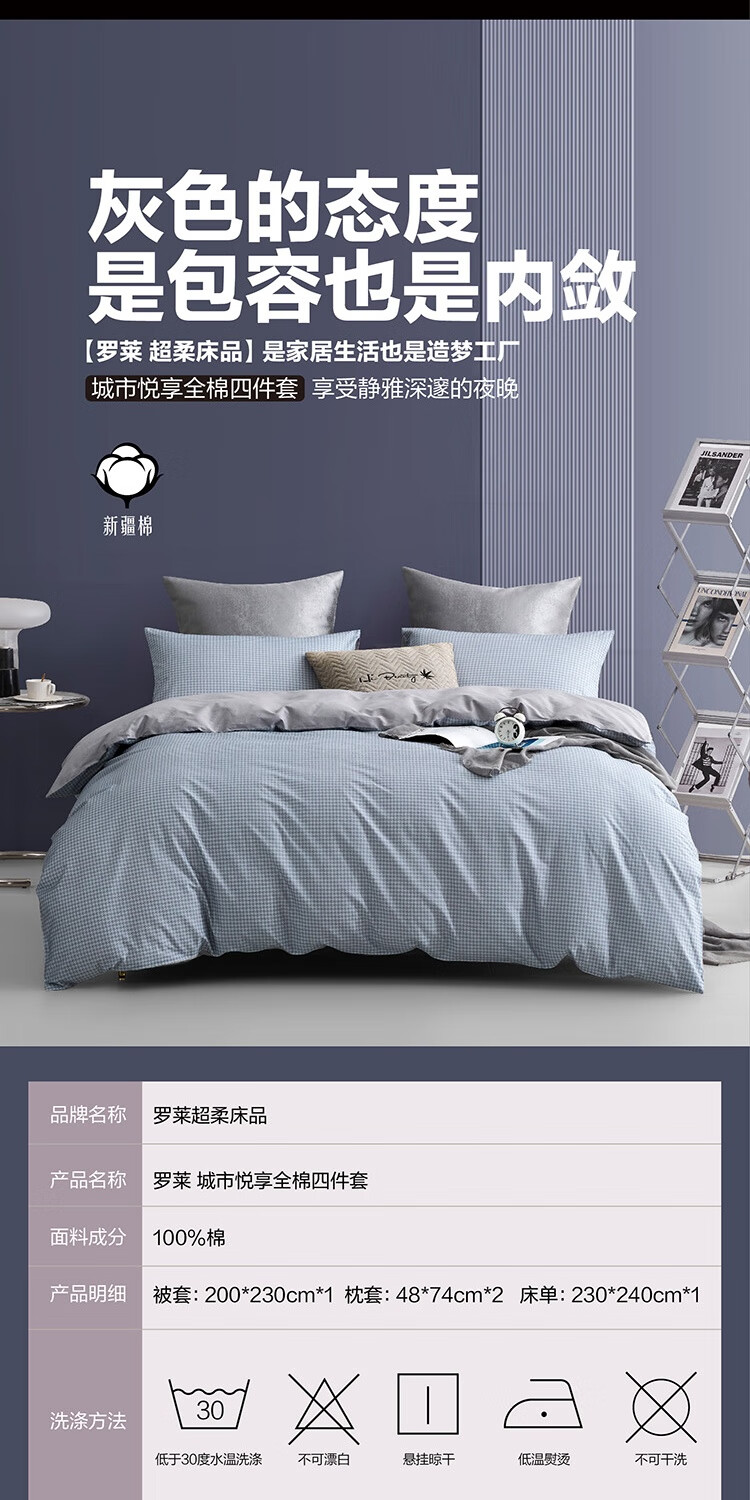 商品名称:罗莱家纺 城市悦享全棉四件套 200*230cm