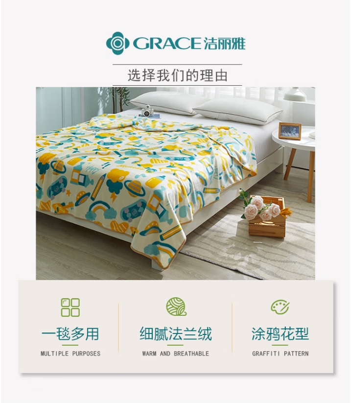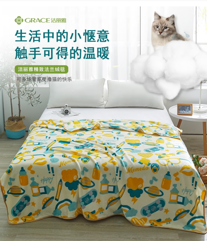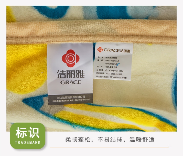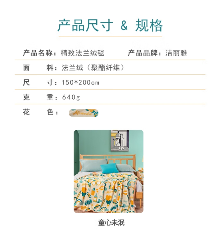 商品名称:洁丽雅 精致法兰绒毯 150*200cm 640g CP1207-1
