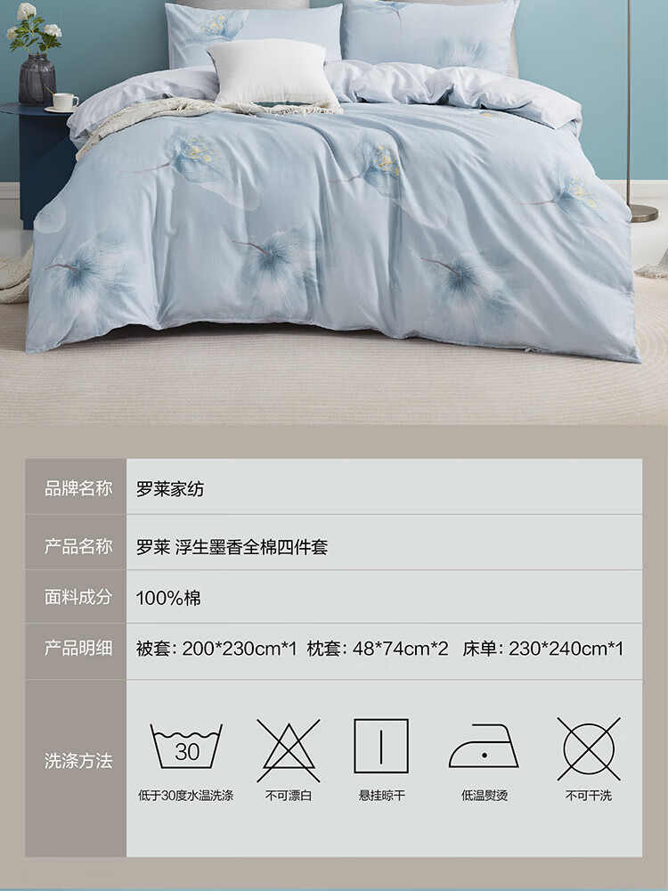 商品名称:罗莱家纺 超柔床品 浮生墨香全棉四件套 200*230cm