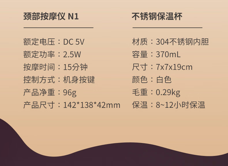 包装清单 :颈部按摩仪*1 保温杯*1 精美手提袋*1