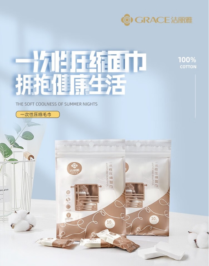 洁丽雅 一次性压缩毛巾10粒 24*30cm 10粒/包 MRJ725