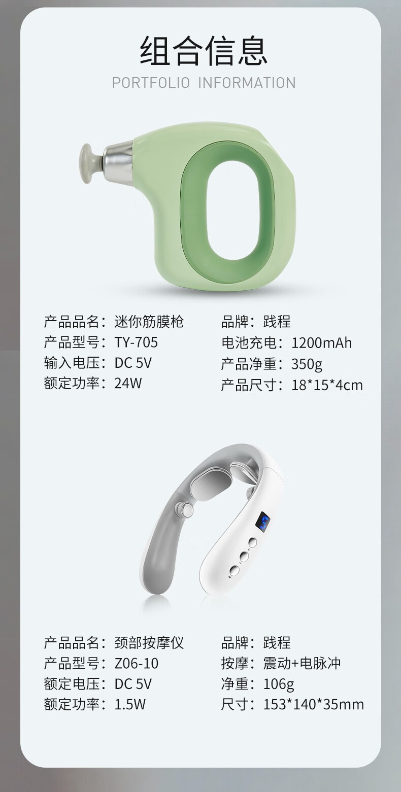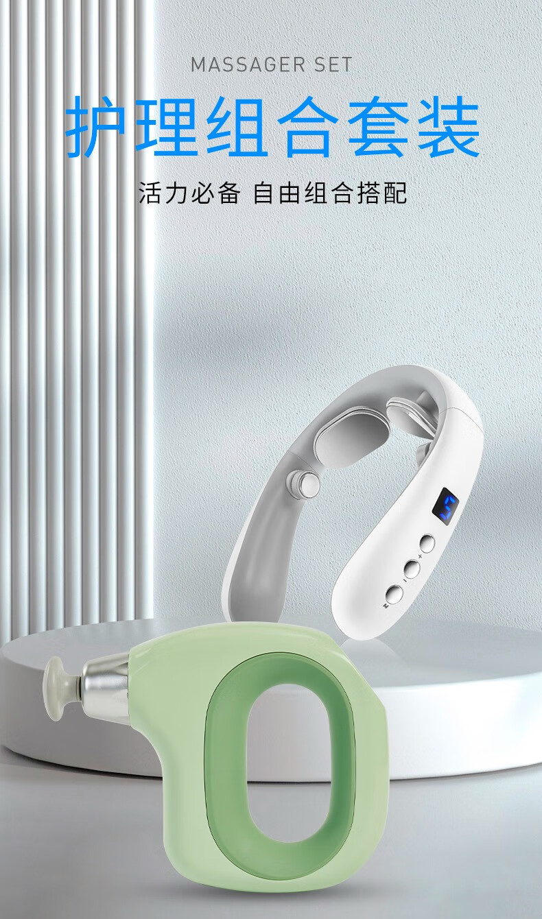 商品名称:践程 按摩仪组合套装 蓝色组合997 筋膜枪+颈部按摩仪