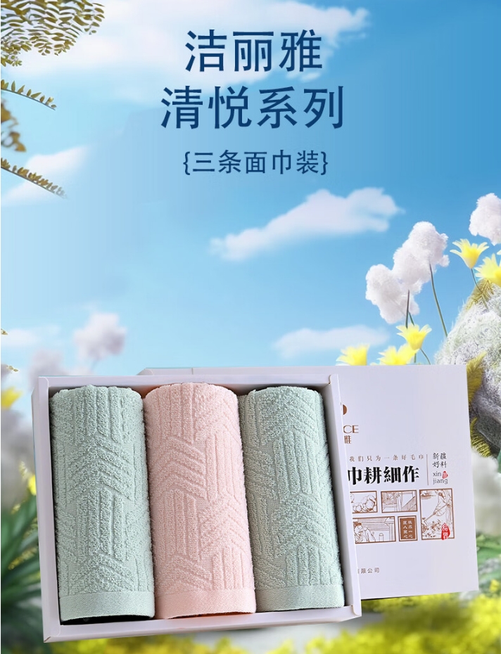 洁丽雅 清悦-3 66*33cm 60g 面巾*3条