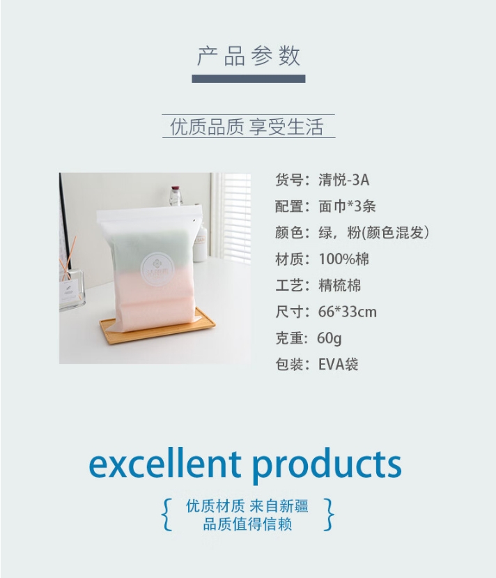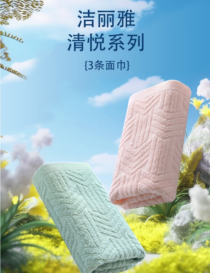 商品名称:洁丽雅 清悦-3A 66*33cm 60g 面巾*3条