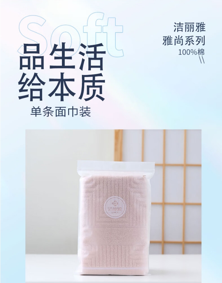 洁丽雅 雅尚-1A 72*34cm 82g 纯棉面巾*1条