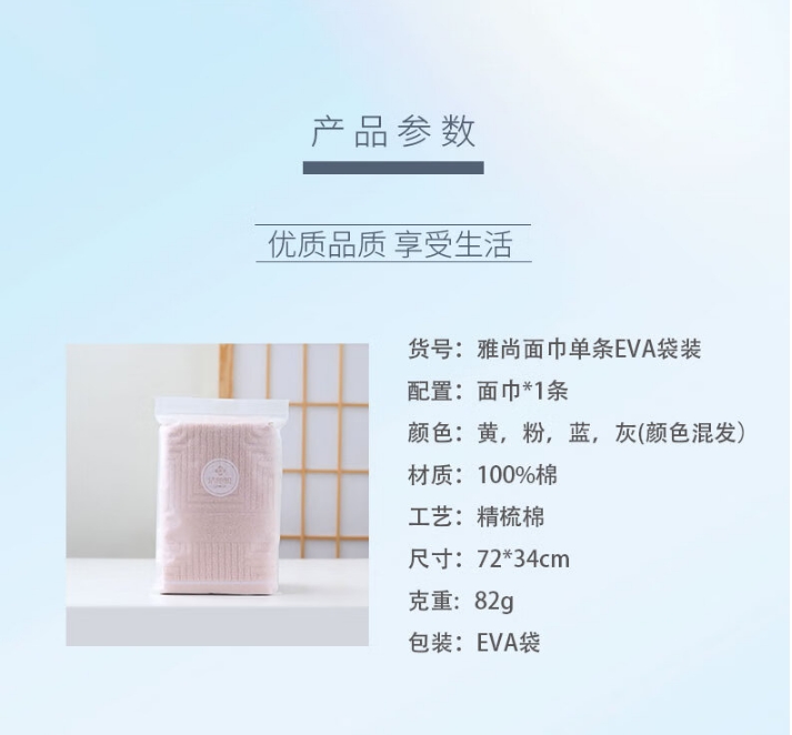 商品名称:洁丽雅 雅尚-1A 72*34cm 82g 纯棉面巾*1条