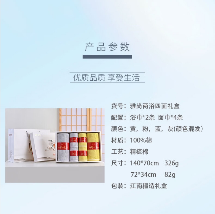 产品尺寸 :面巾:72*34cm 浴巾:140*70cm