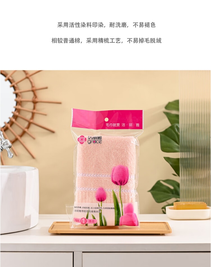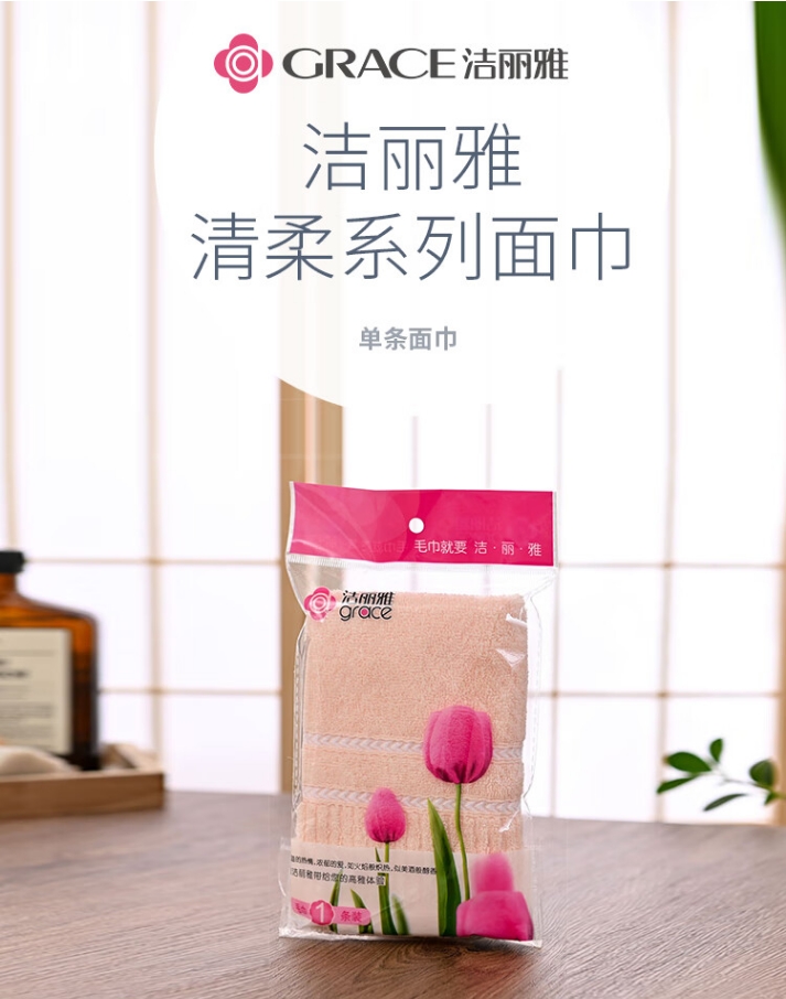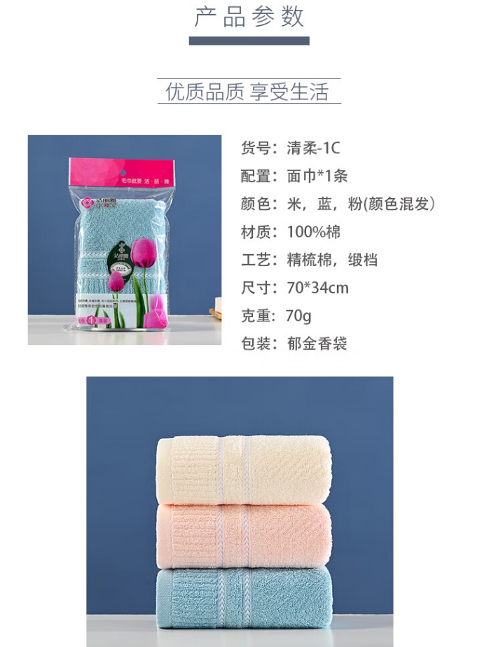 商品名称:洁丽雅 清柔-1C 70*34cm 70g 纯棉面巾*1条