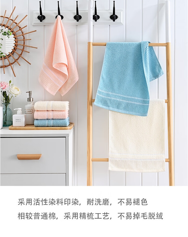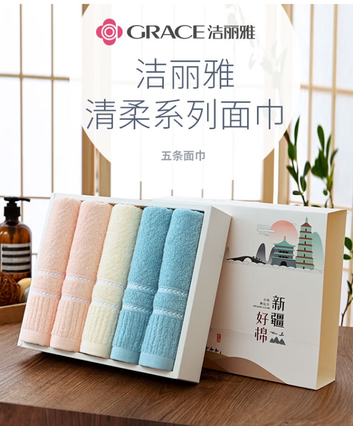 洁丽雅 清柔-5 70*34cm 70g 纯棉面巾*5条(颜色混发)
