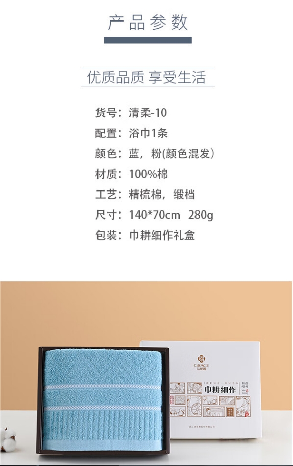 商品名称:洁丽雅 清柔-10 140*70cm 280g 蓝/粉色纯棉浴巾*1条