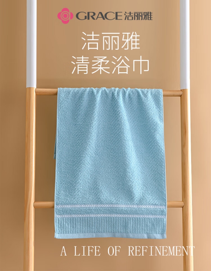 洁丽雅 清柔-10A 140*70cm 280g 蓝/粉色纯棉浴巾*1条