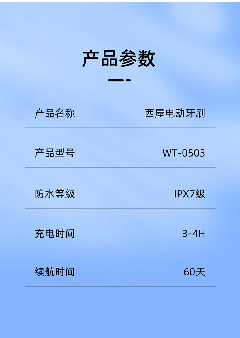 商品名称:西屋 声波式电动牙刷 WT-0503
