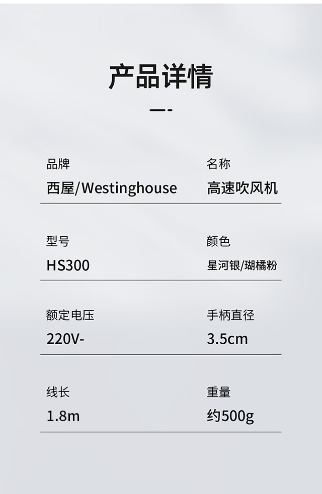 商品名称:西屋 高速电吹风 珊瑚粉/星河银 HS300