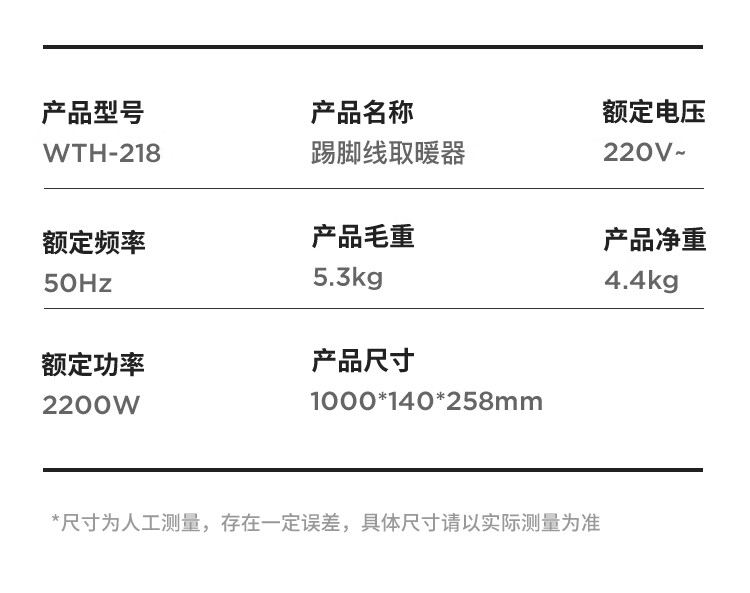 商品名称:西屋 踢脚线取暖器 WTH-218