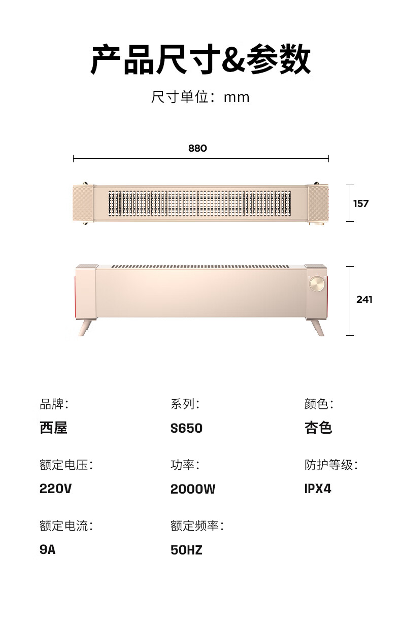 商品名称:西屋 踢脚线取暖器 WTH-S650