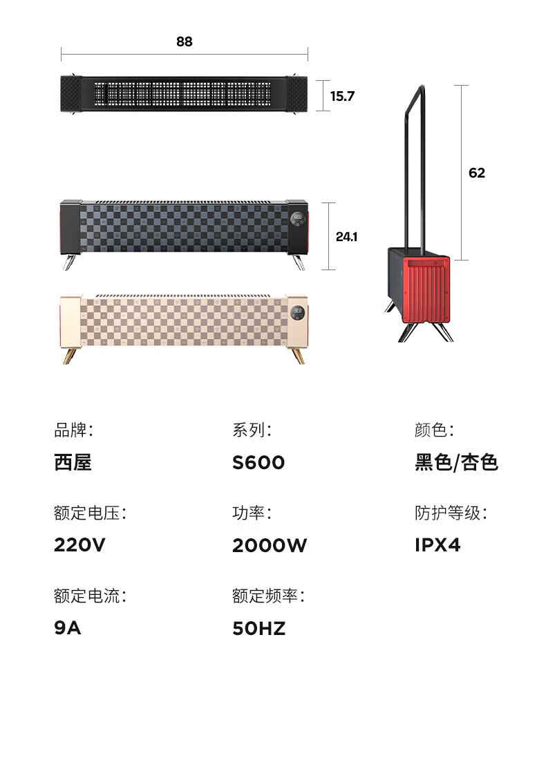 商品名称:西屋 踢脚线取暖器 WTH-S600