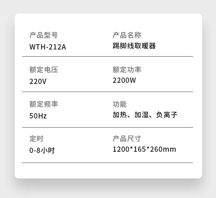 商品名称:西屋 踢脚线取暖器 WTH-212A