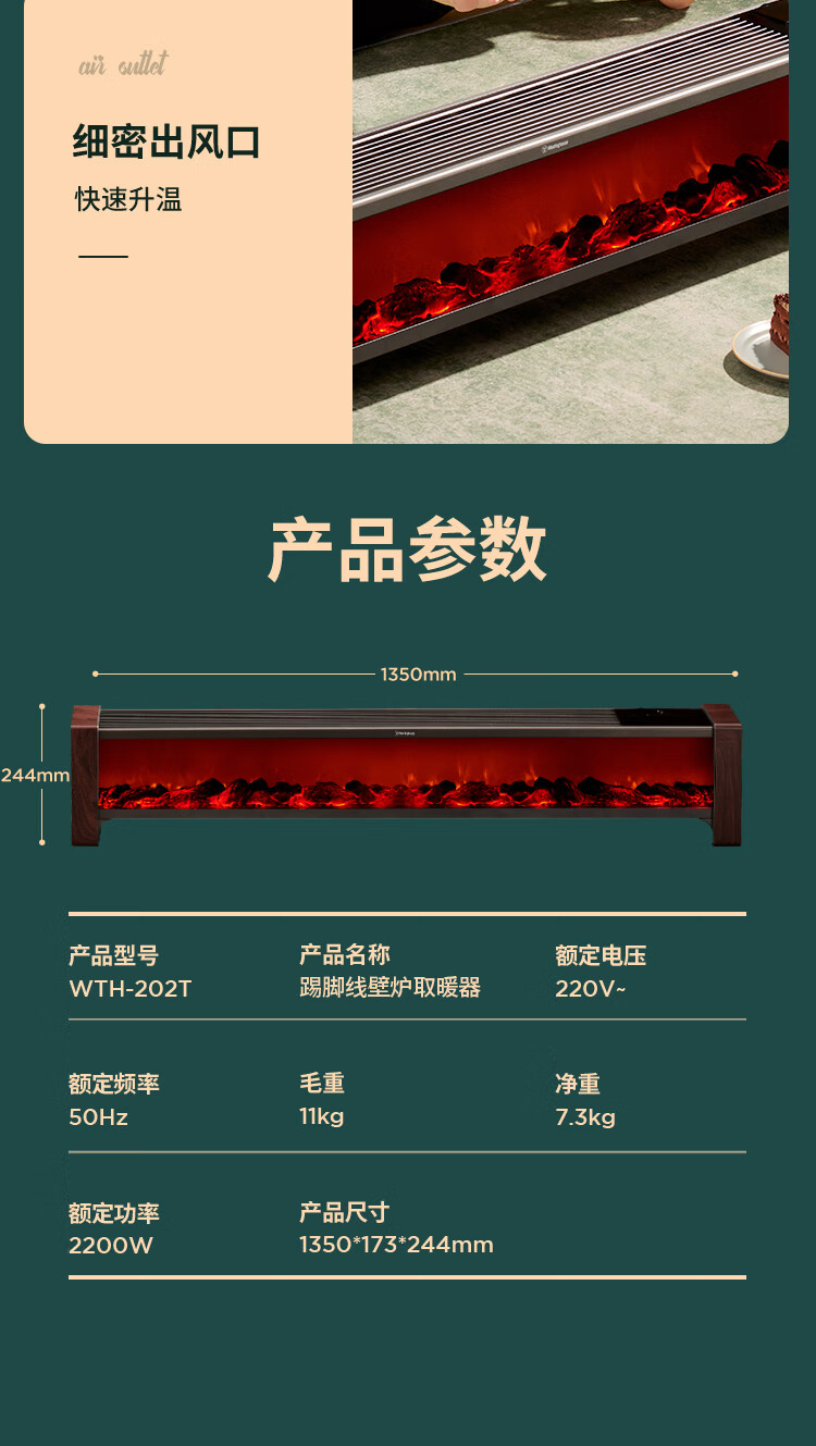 商品名称:西屋 踢脚线取暖器 WTH-202T