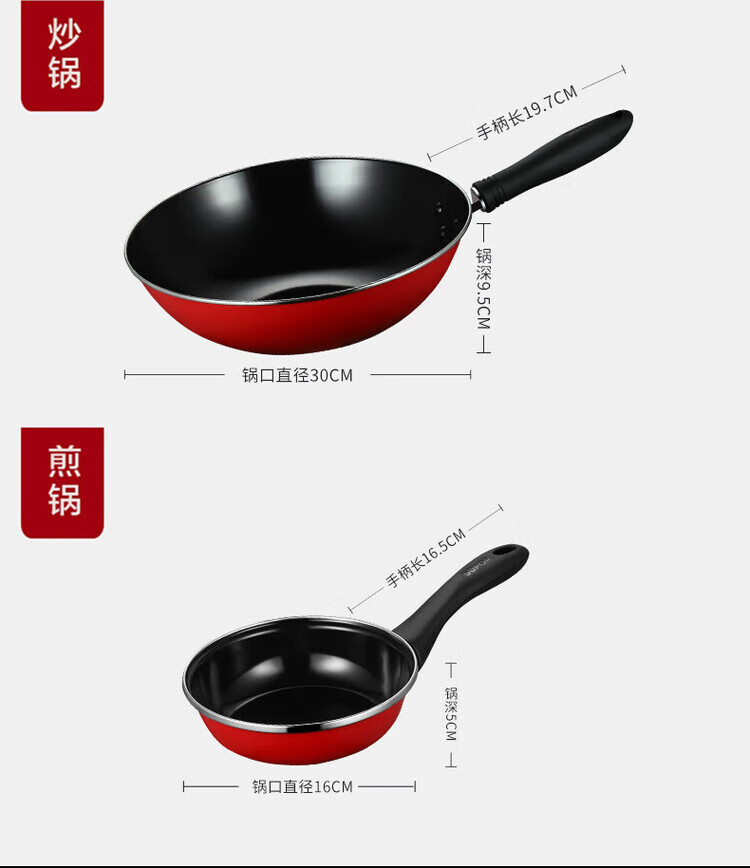 商品名称:苏泊尔 二件套锅具套装两件套 30cm炒锅+16cm煎锅 T0934T