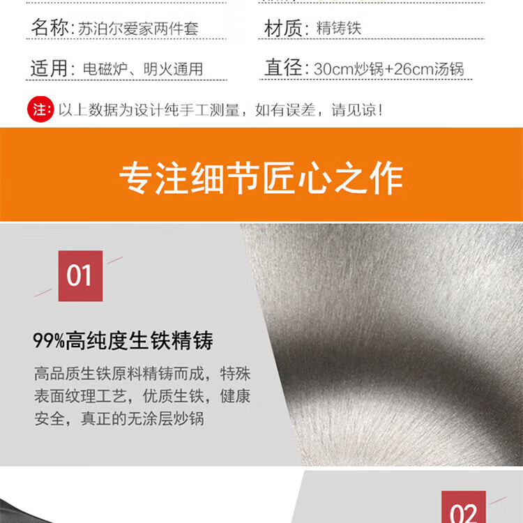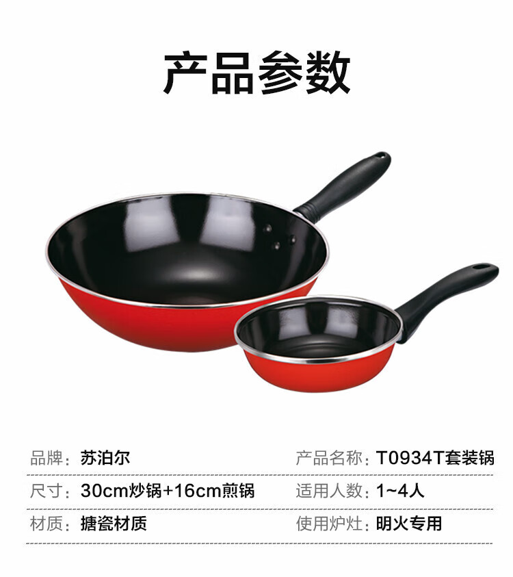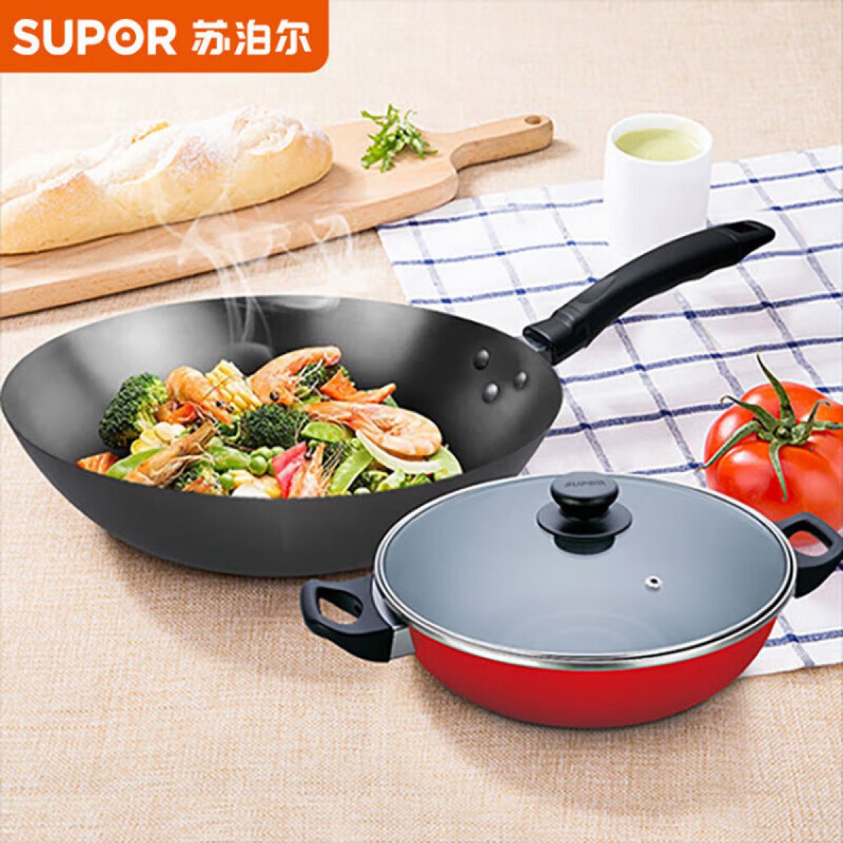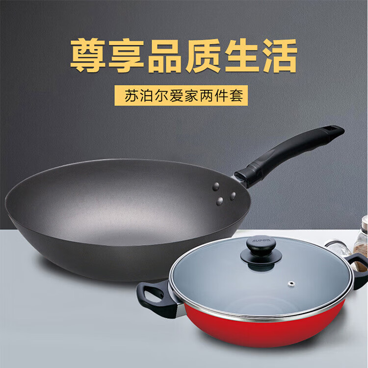苏泊尔 炒锅二件套汤锅套装 30cm炒锅+26cm煎锅 VTP1634T