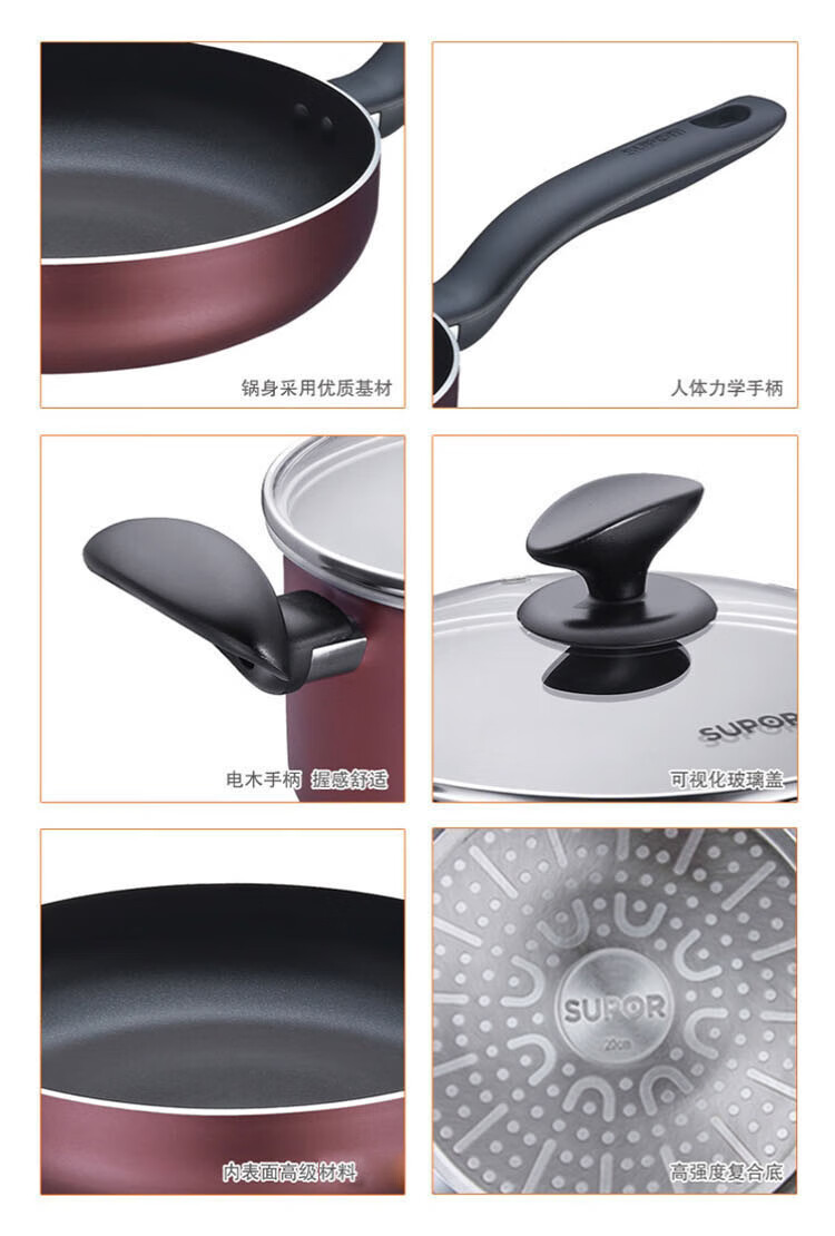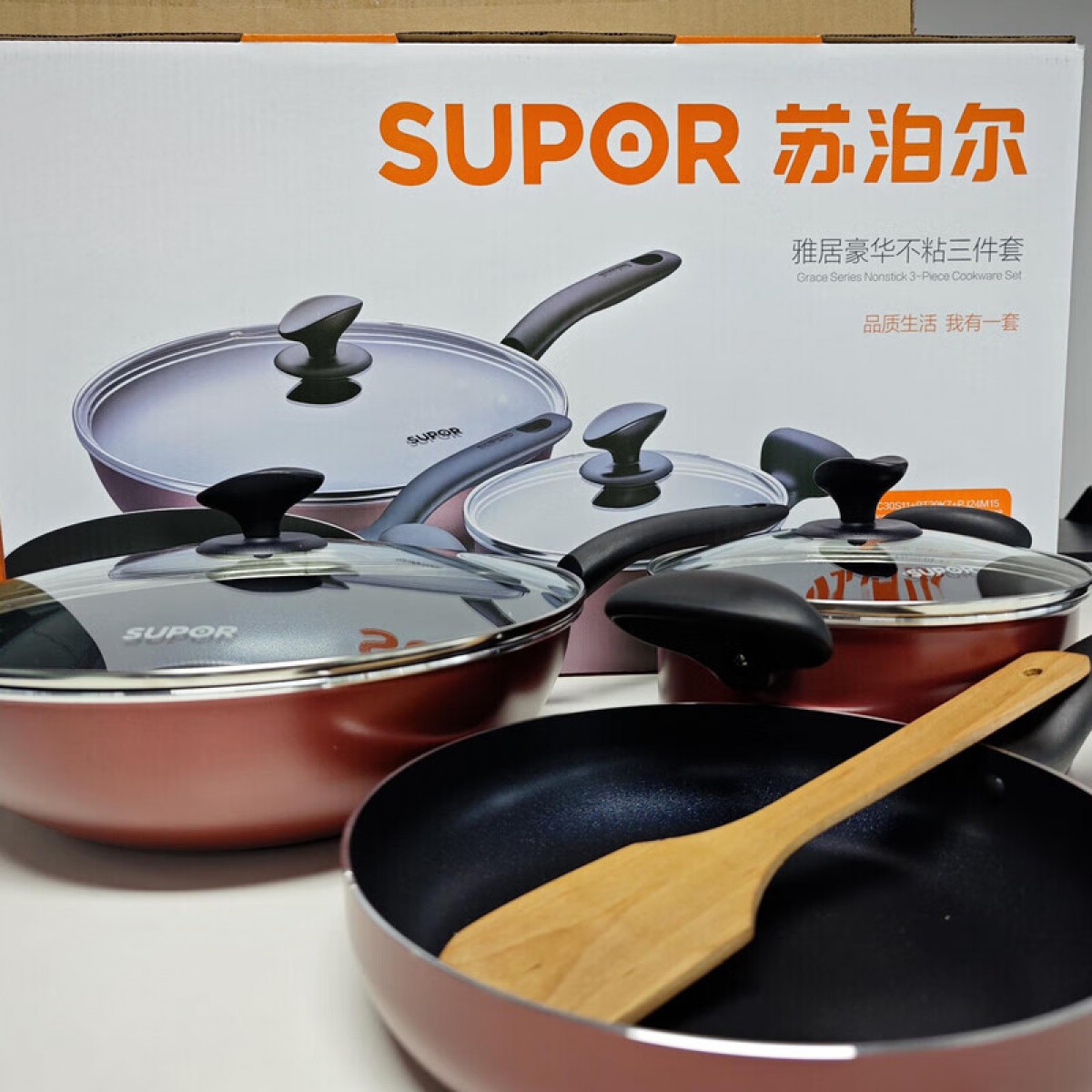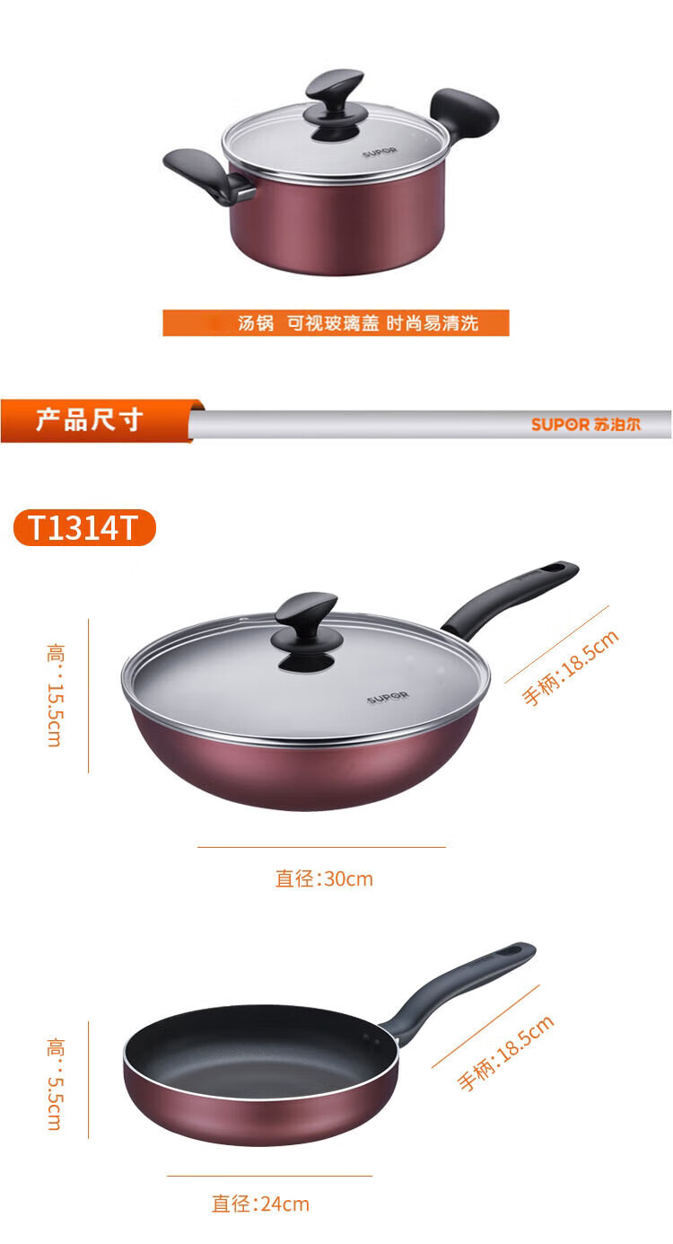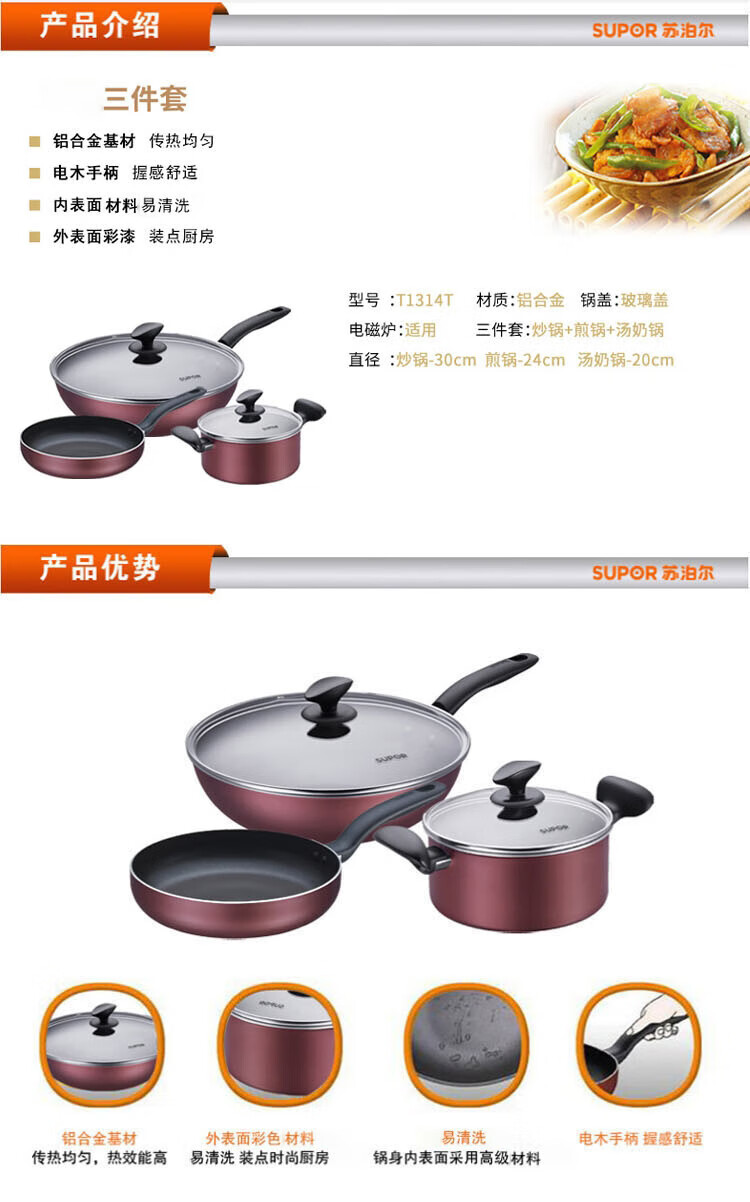 商品名称:苏泊尔 雅居豪华不粘锅三件套 30cm炒锅+20cm汤锅+24cm煎锅 T1314T