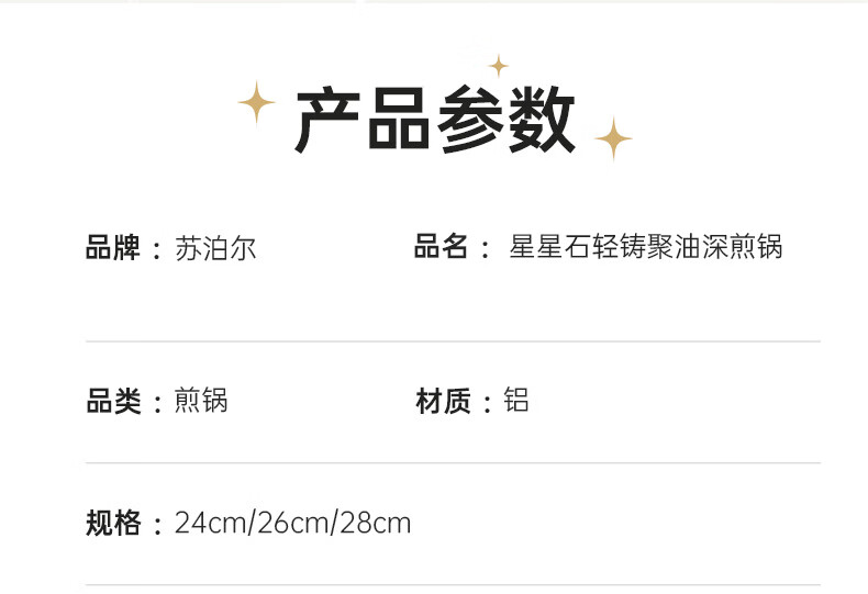 商品名称:苏泊尔 平底锅星星石轻铸聚油 24cm EJ24LBP02