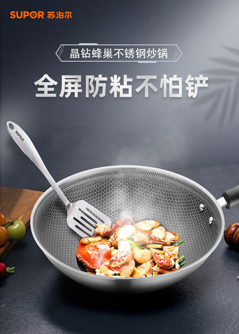 苏泊尔 316L不锈钢晶钻蜂巢炒锅 32cm CC32JA13