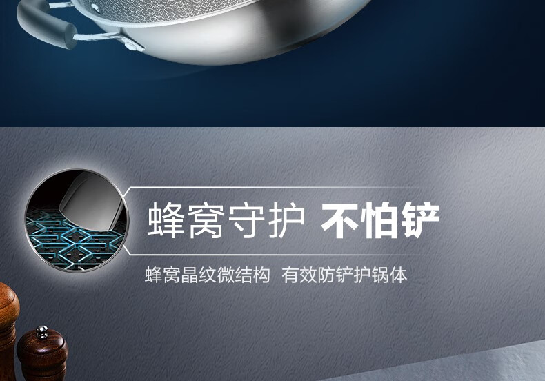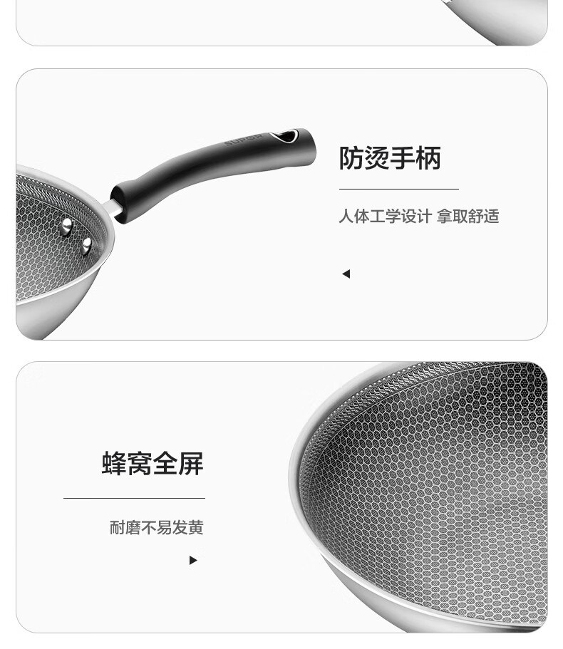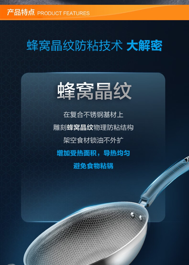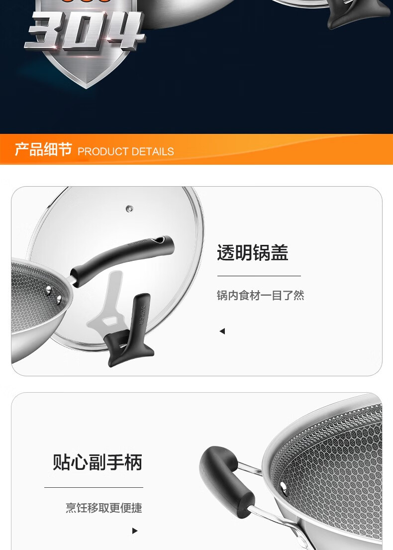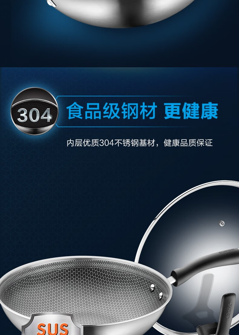 商品名称:苏泊尔 316L不锈钢晶钻蜂巢炒锅 32cm CC32JA13