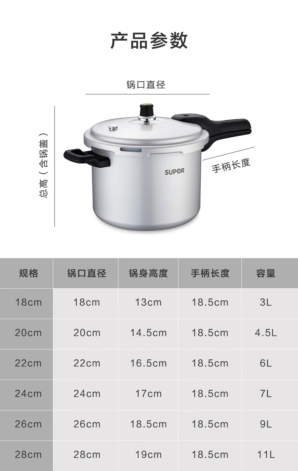 商品名称:苏泊尔 高压锅压力锅铝合金多容量 20cm YL203H2