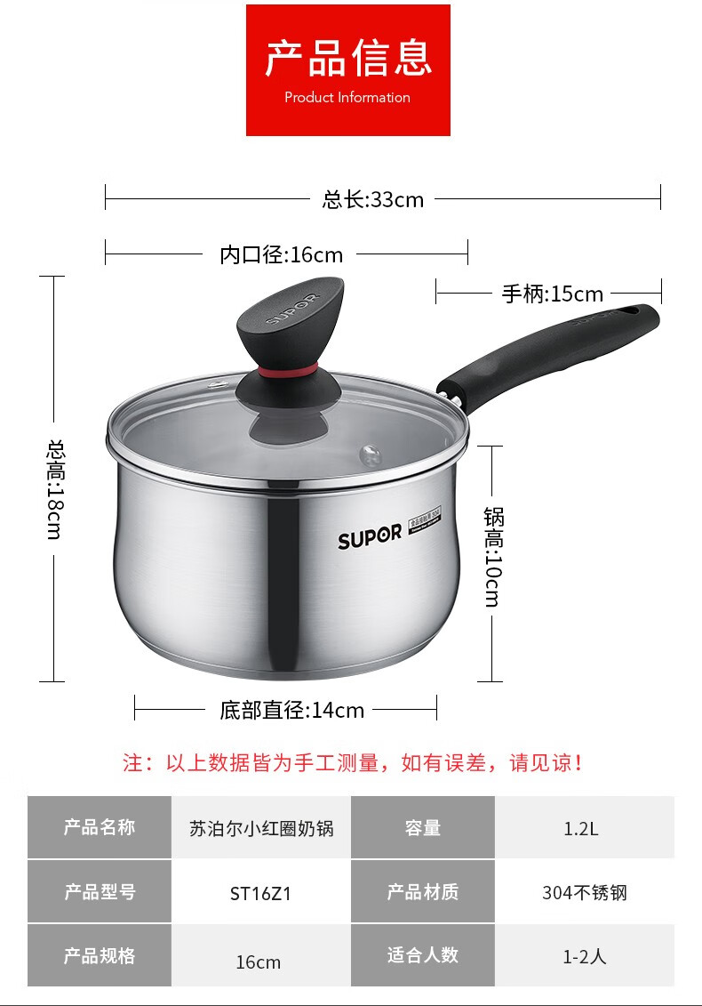 商品名称:苏泊尔 好帮手不锈钢复底汤锅 16cm ST16Z1