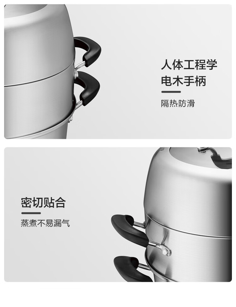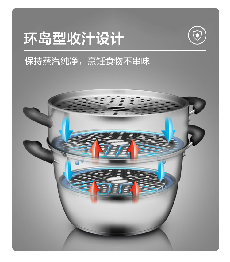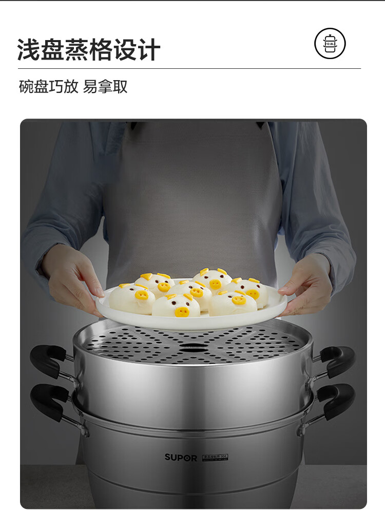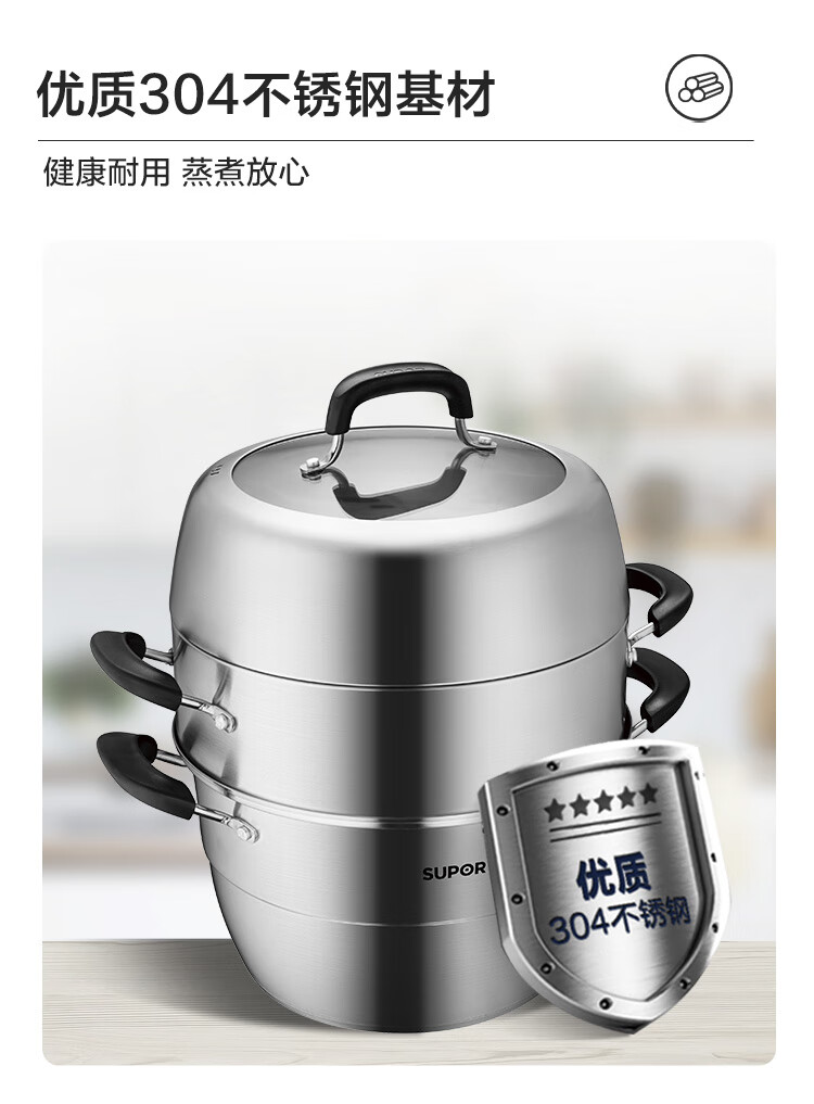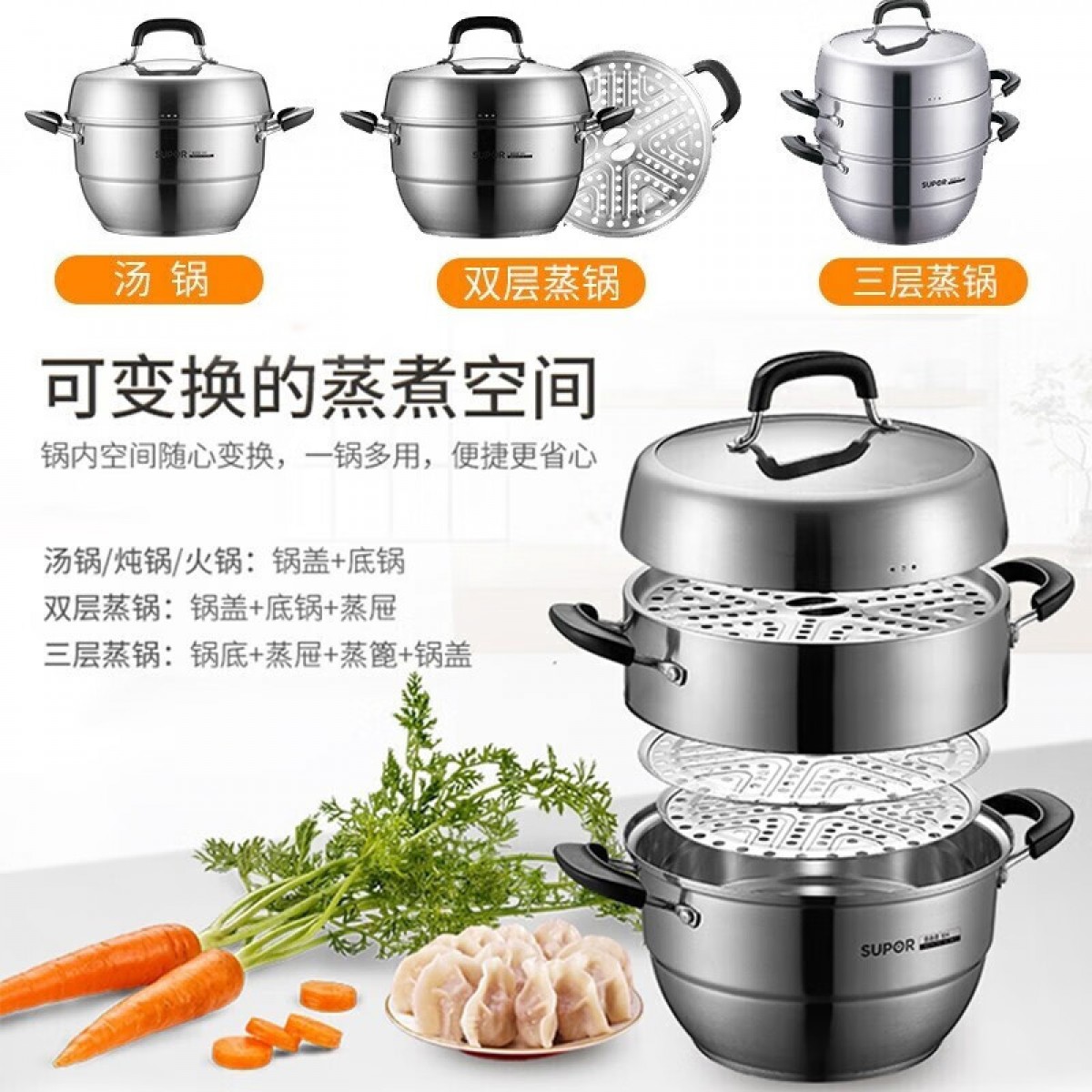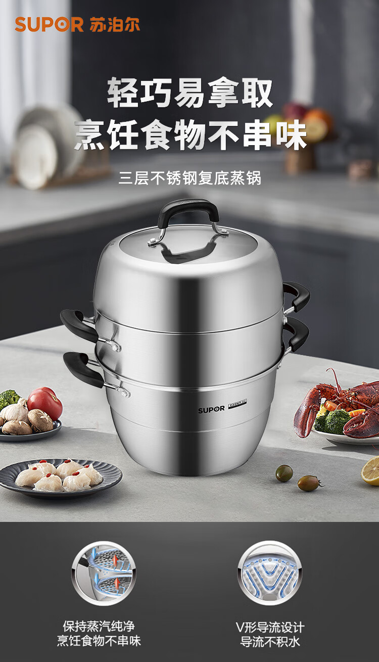 苏泊尔 巧易取不串味三层不锈钢复底锅 26cm SZ26V4