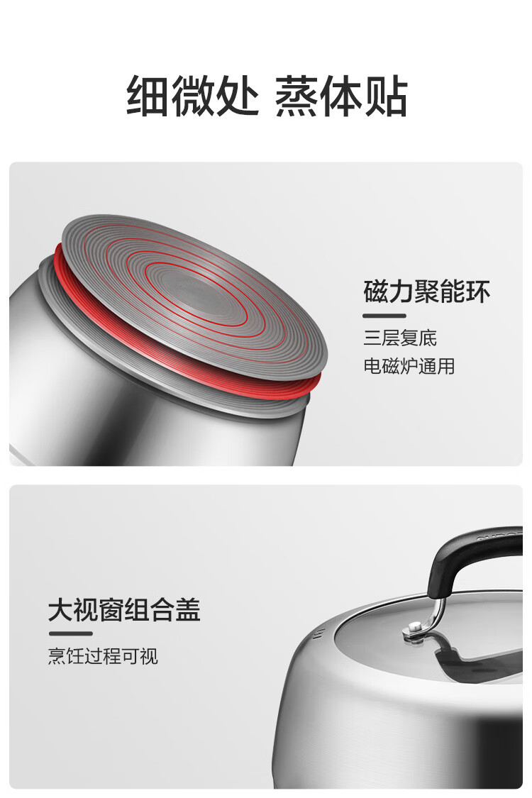 商品名称:苏泊尔 巧易取不串味三层不锈钢复底锅 26cm SZ26V4