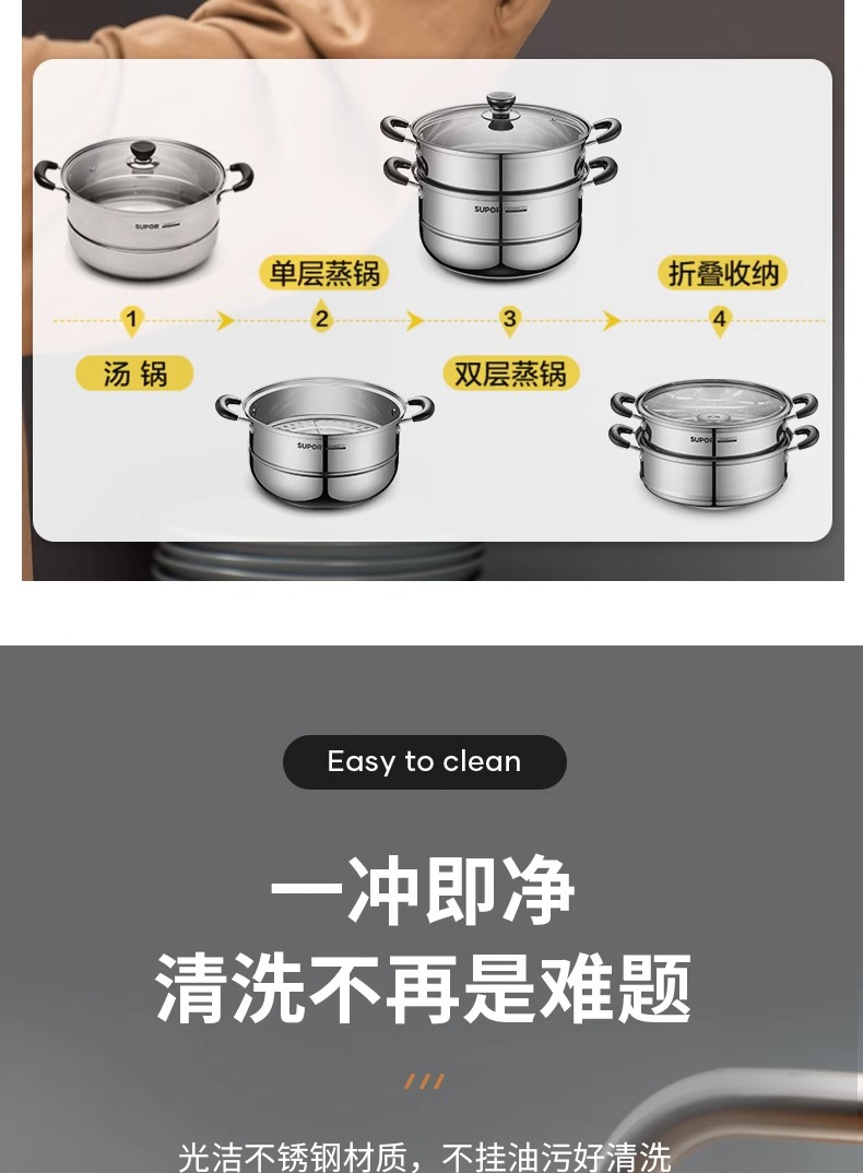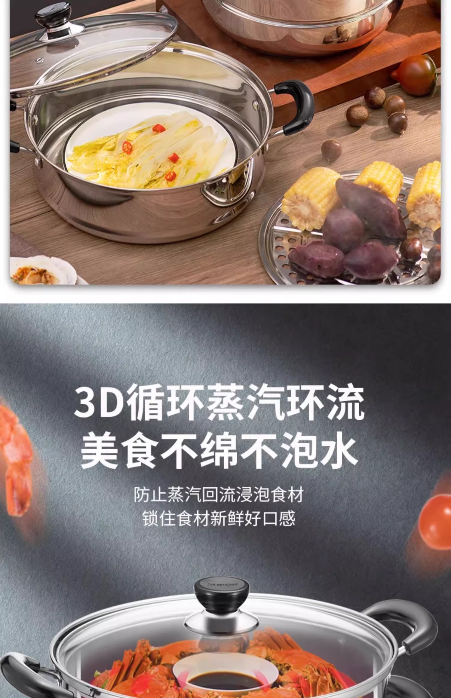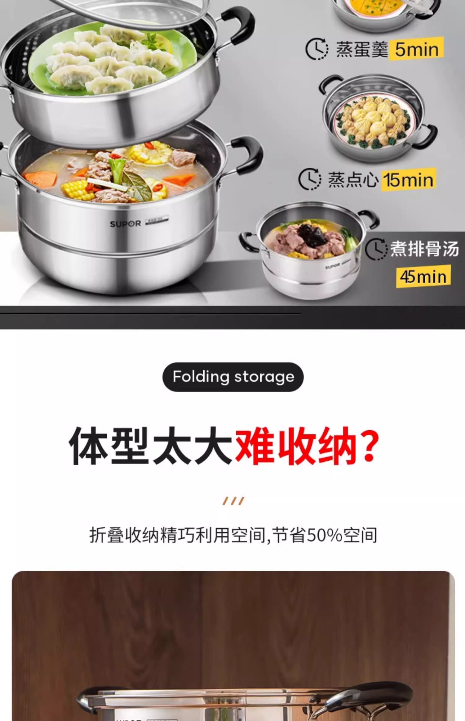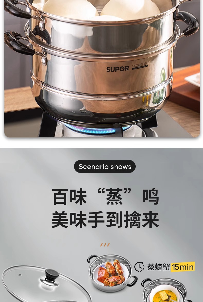 商品名称:苏泊尔 易存储不锈钢三层复底蒸锅 30cm SZ30HB1