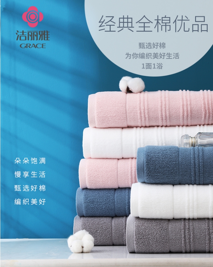 商品名称:洁丽雅 经典全棉优品-6C 面巾*1条 72*34cm 95g、浴巾*1条 140*70cm 380g