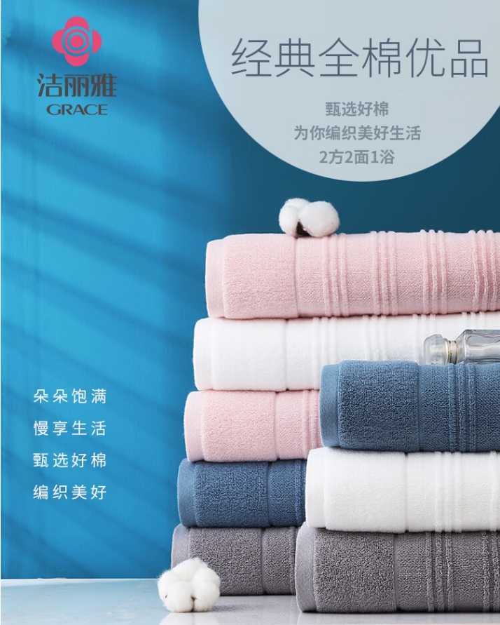 洁丽雅 经典全棉优品-7 方巾*2条 34*34cm、面巾*2条 72*34cm、浴巾*1条 140*70cm(颜色混发)