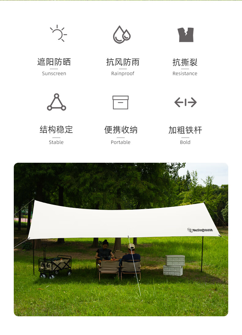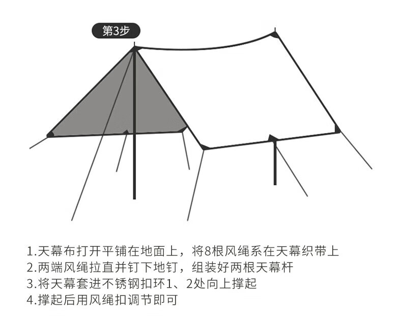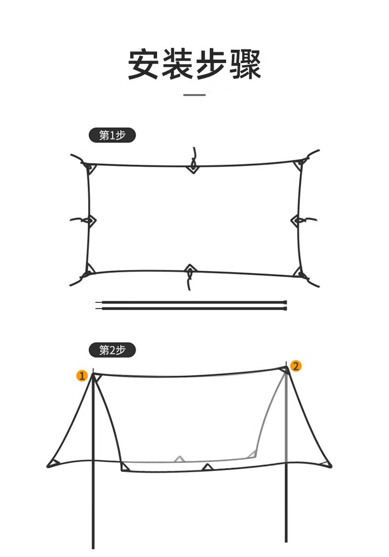 包装清单 :天幕杆x2 防风绳x6 7字地钉x6