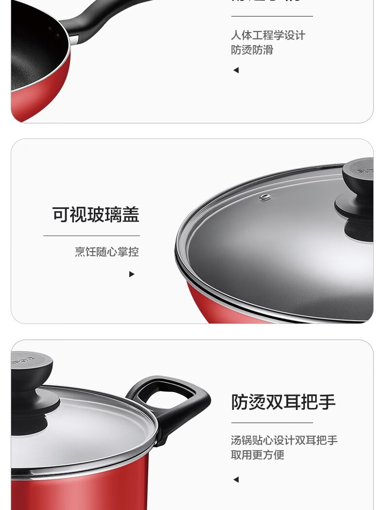 苏泊尔 炊具系列-火红点经典不粘三件套 炒锅32cm 煎锅26cm 汤锅20cm TP1926Q