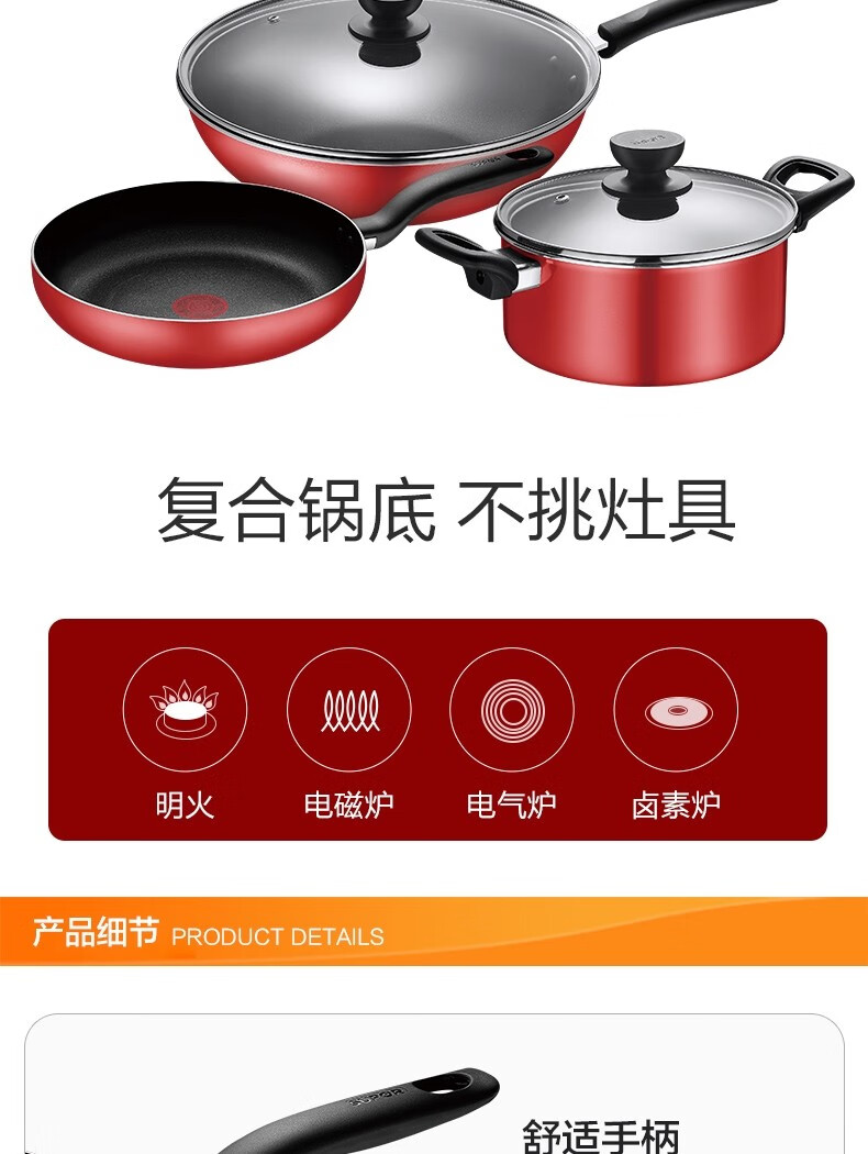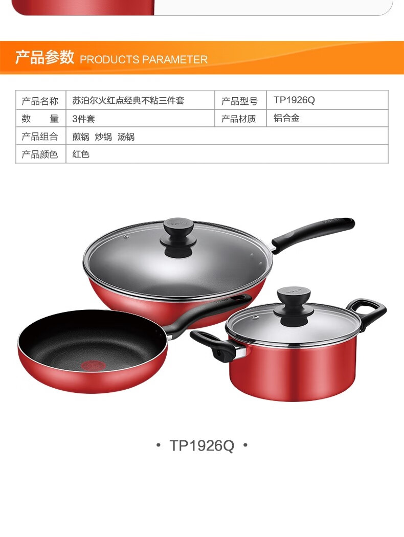商品名称:苏泊尔 炊具系列-火红点经典不粘三件套 炒锅32cm 煎锅26cm 汤锅20cm TP1926Q