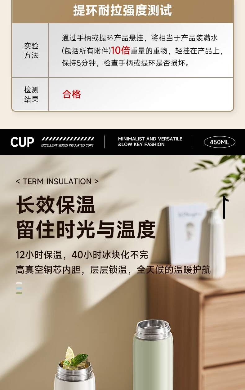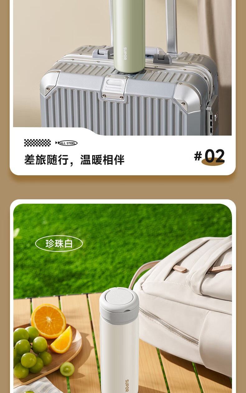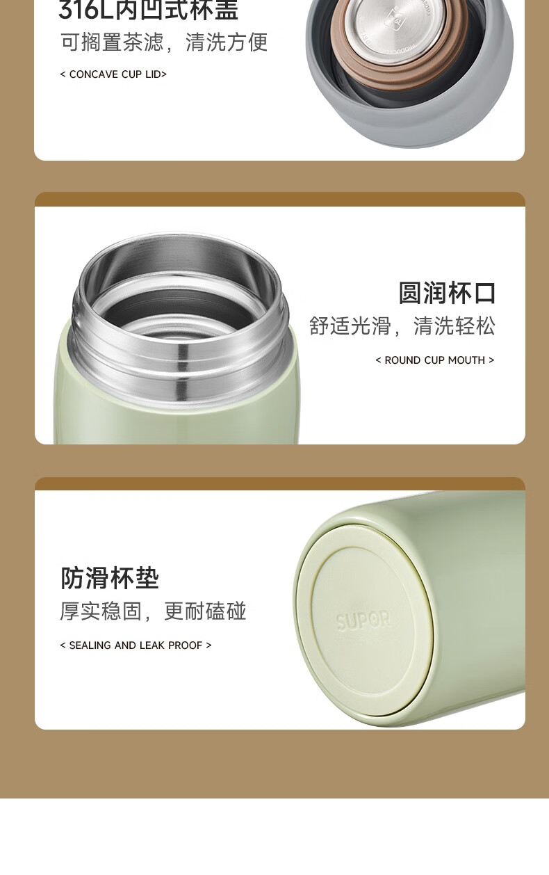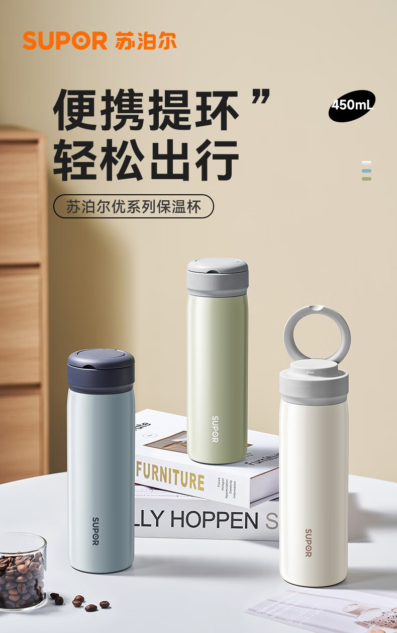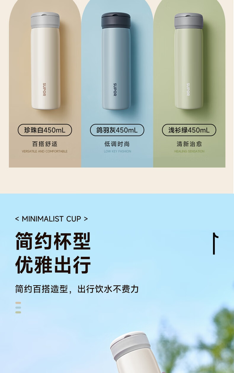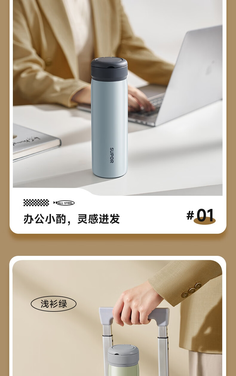 苏泊尔保温杯保温杯316L不锈钢学生水杯子 450ml KCV45BC10(珍珠白)/KCV45BC11(鸽羽棕)/KCV45BC12(浅杉绿)