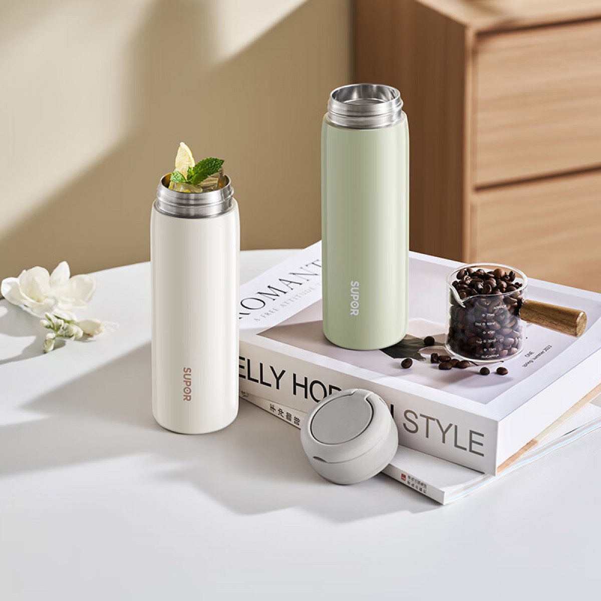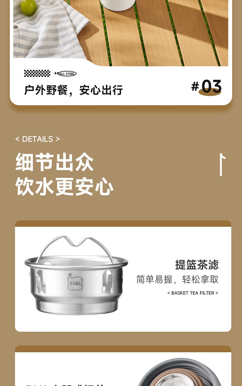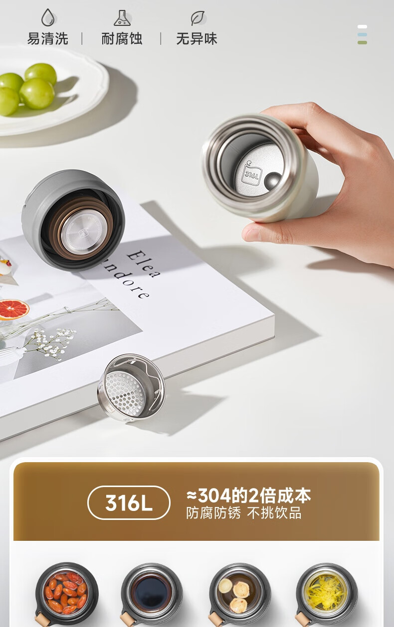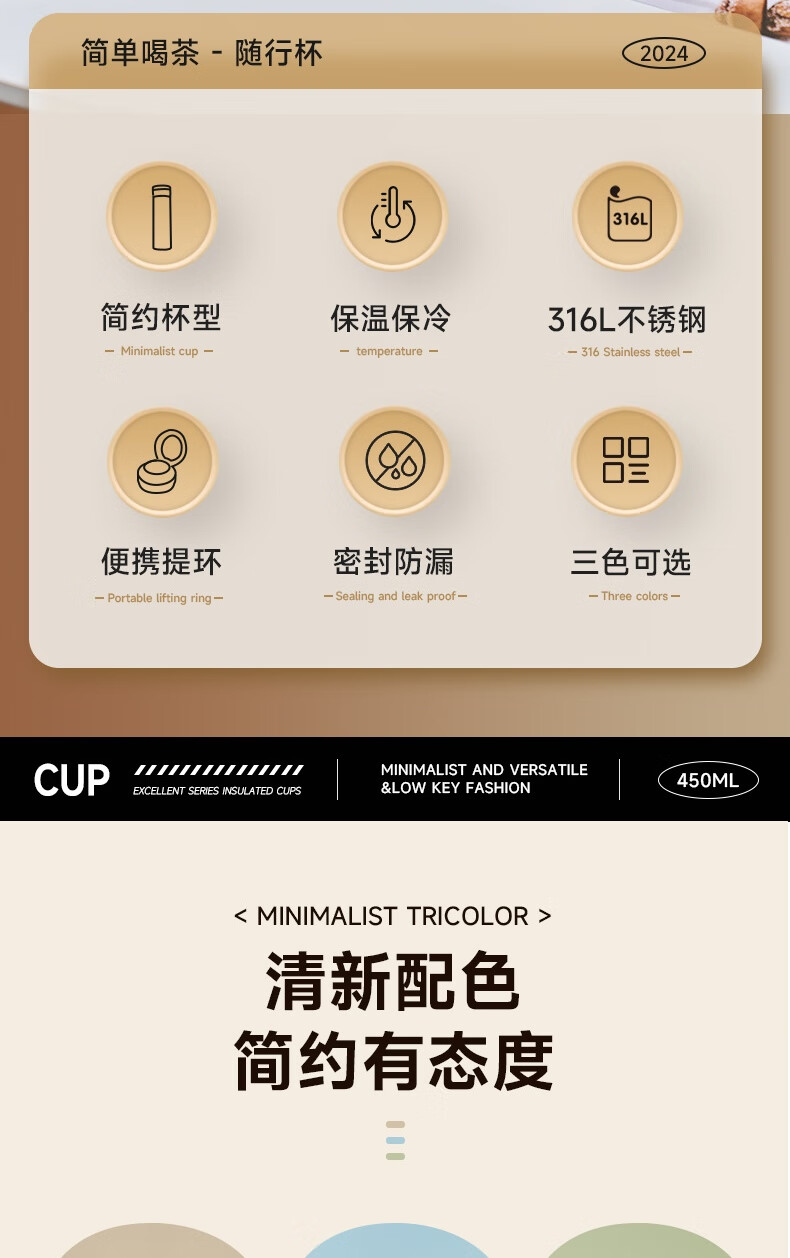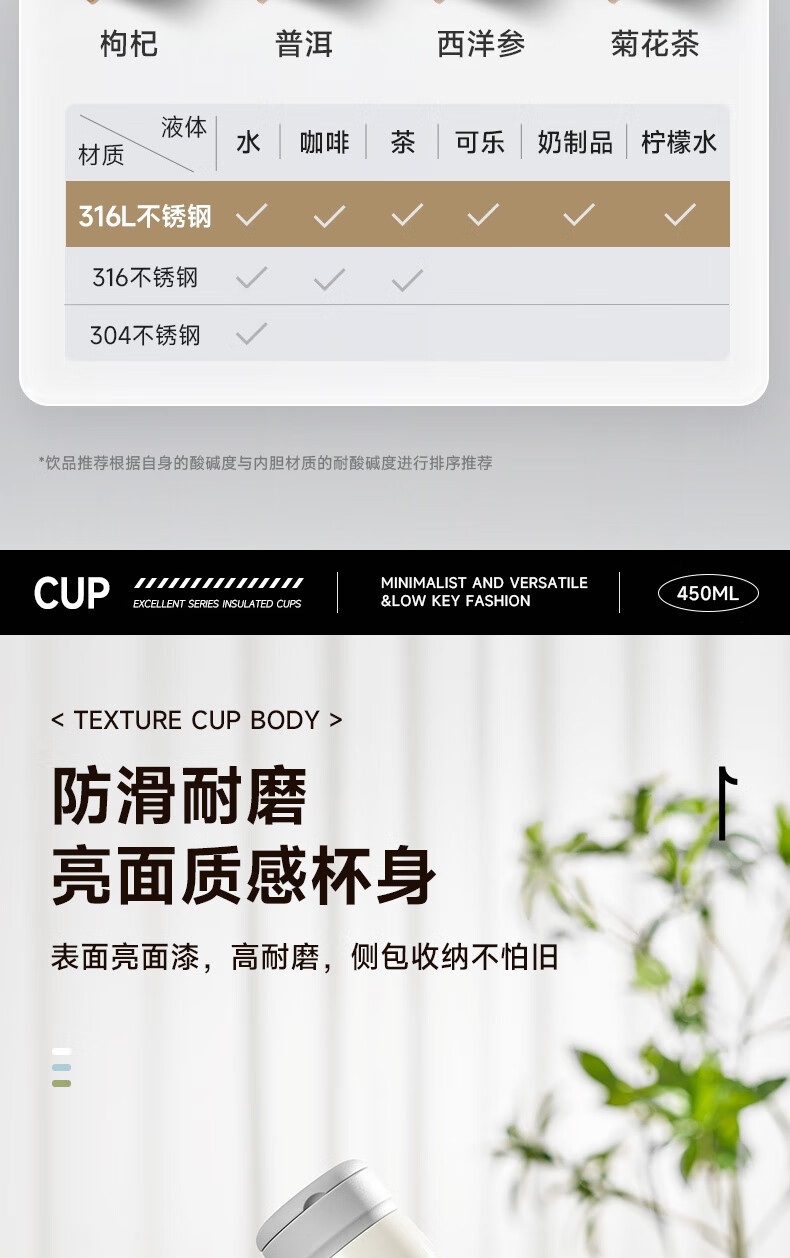 苏泊尔保温杯保温杯316L不锈钢学生水杯子 450ml KCV45BC10(珍珠白)/KCV45BC11(鸽羽棕)/KCV45BC12(浅杉绿)