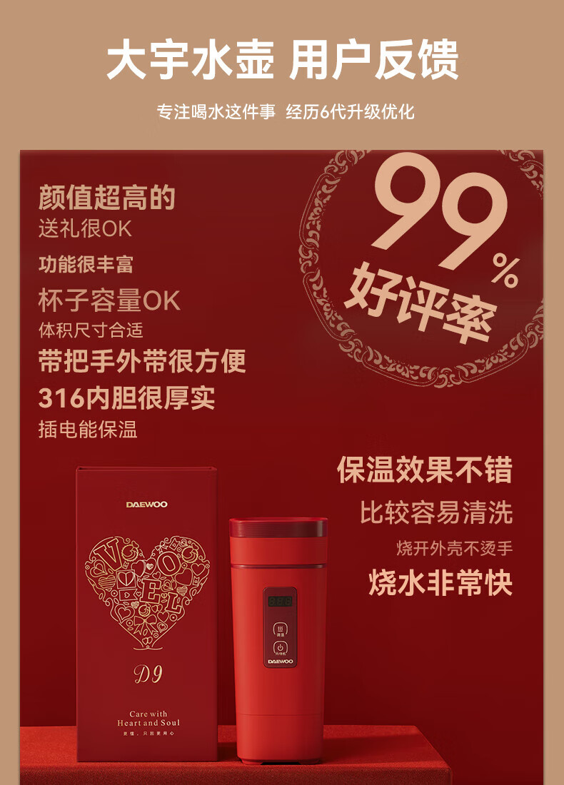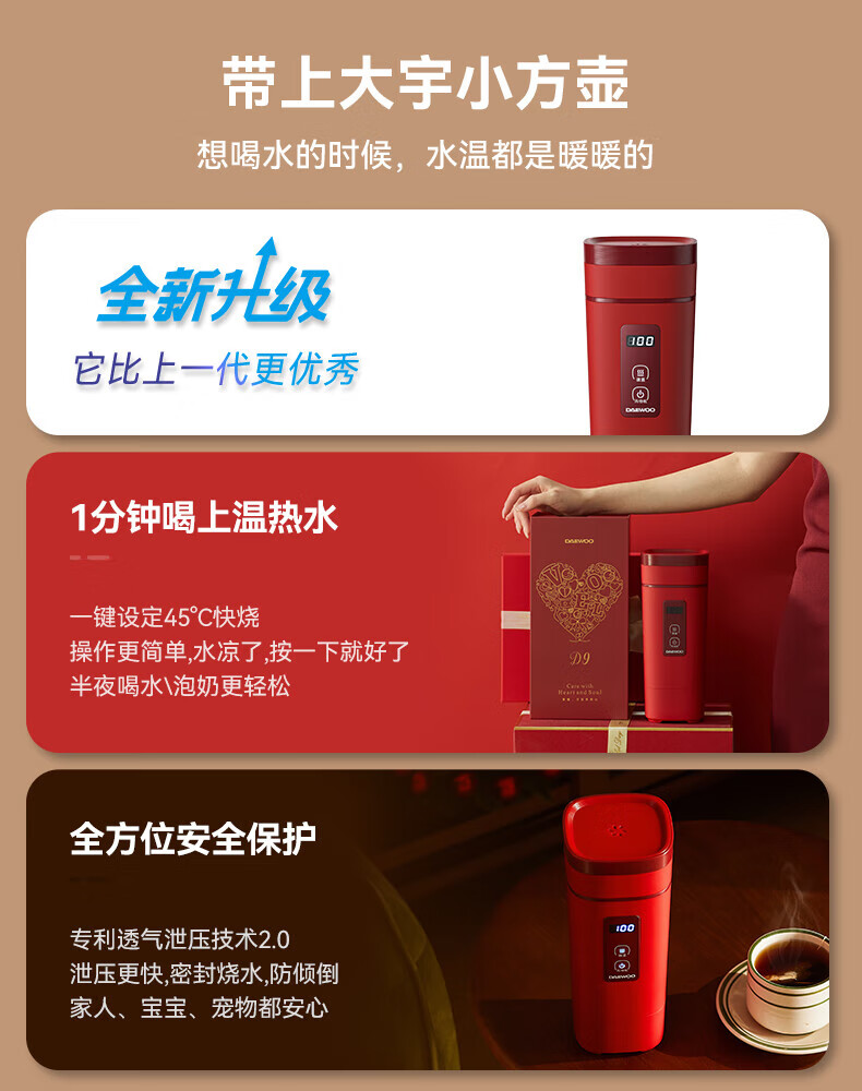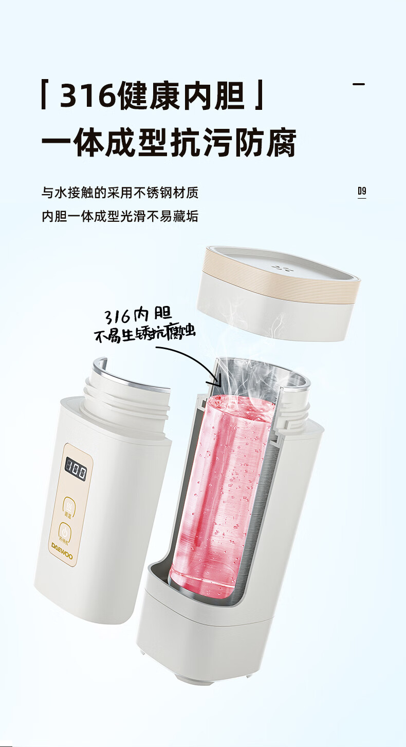 大宇(DAEWOO)便携式电热水杯 450mL D9-FGH