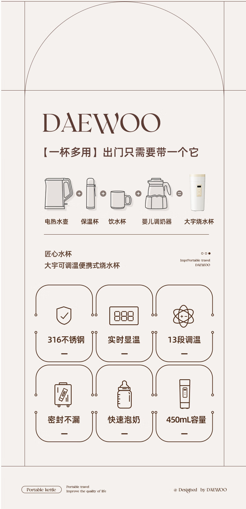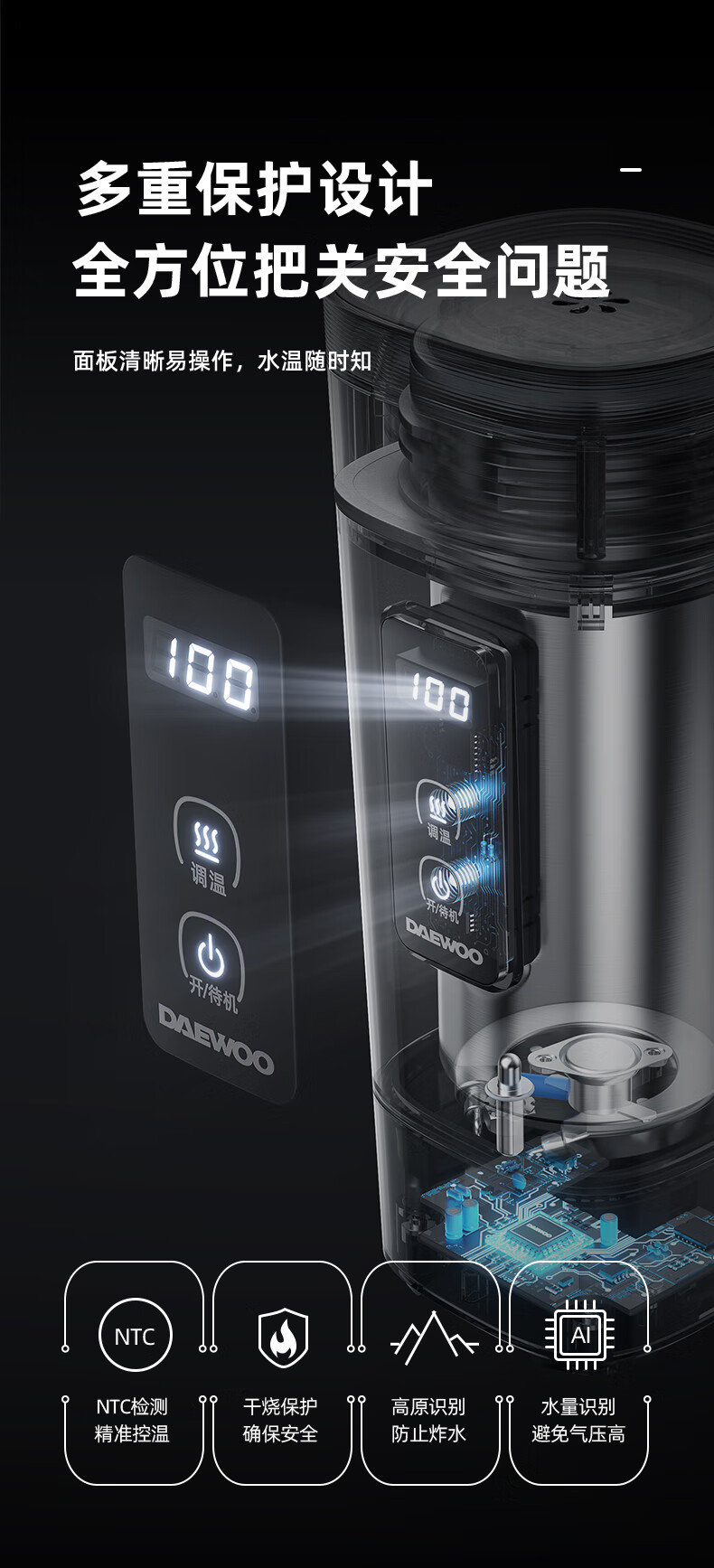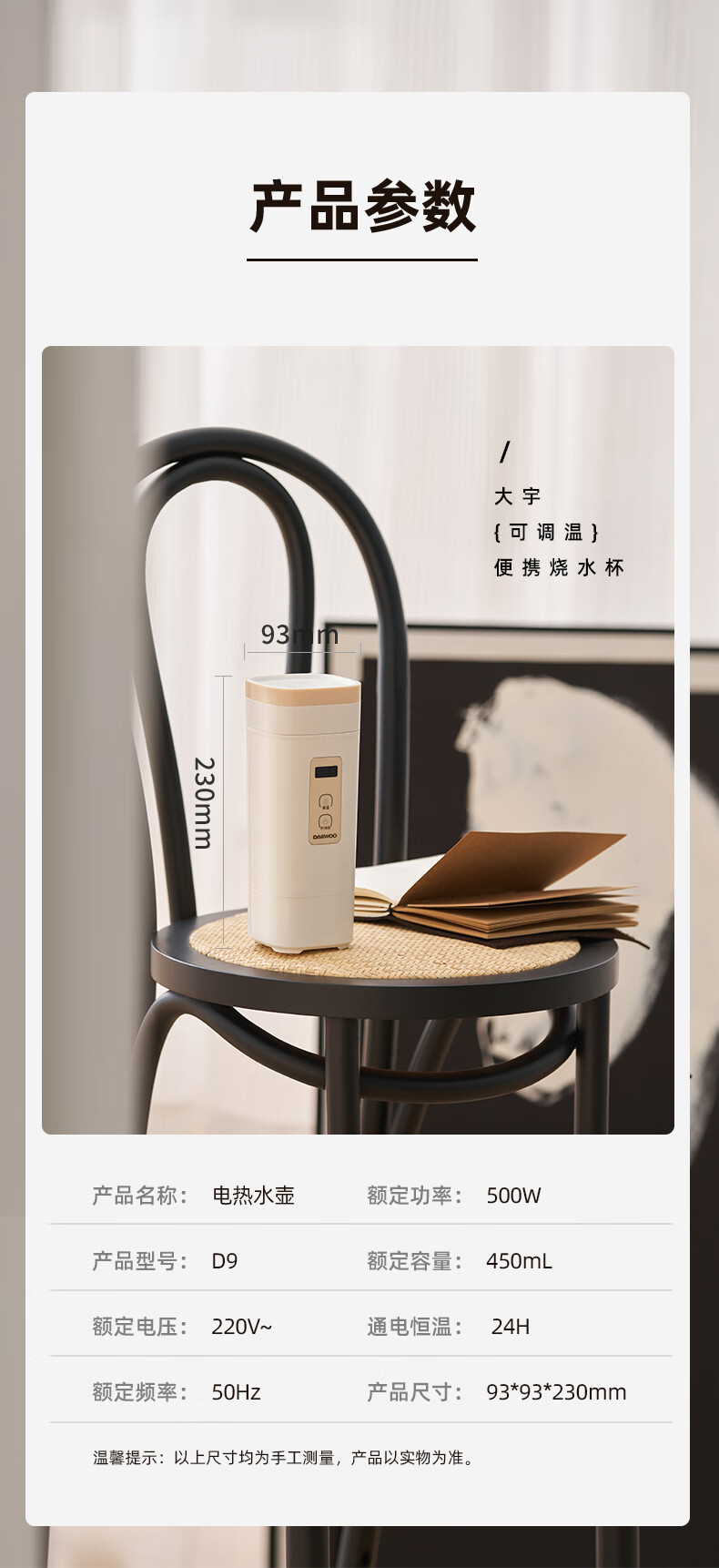 大宇(DAEWOO)便携式电热水杯 450mL D9-FGH