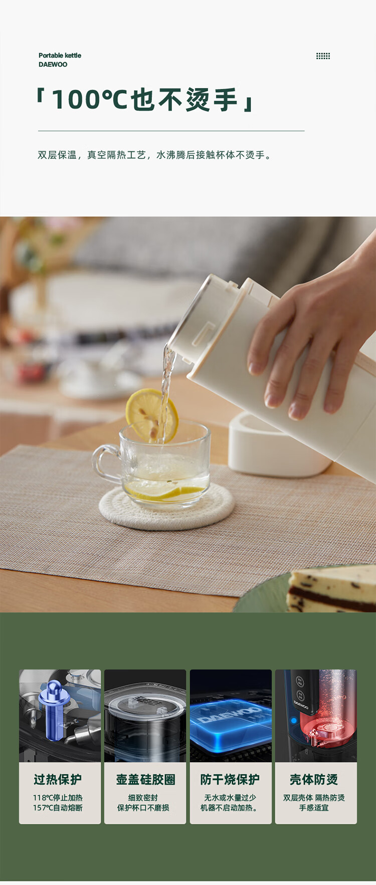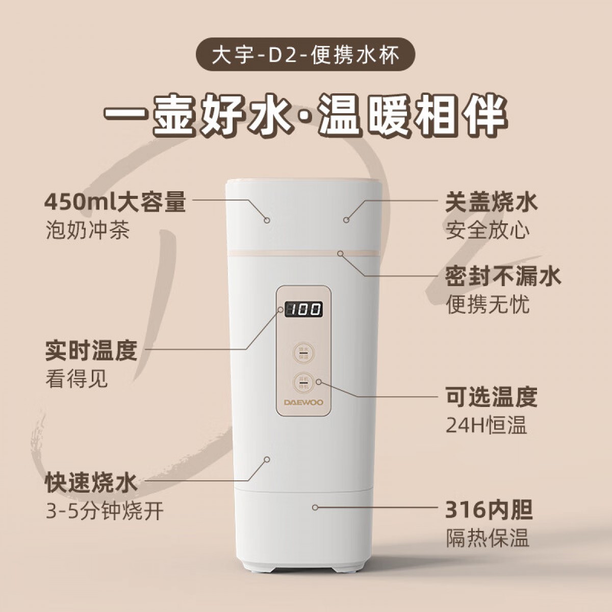 大宇(DAEWOO)便携式电热水壶 450mL D2