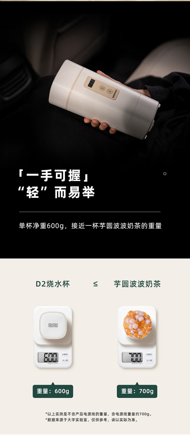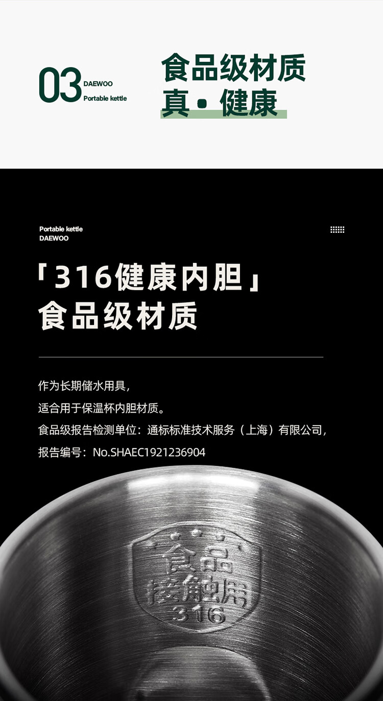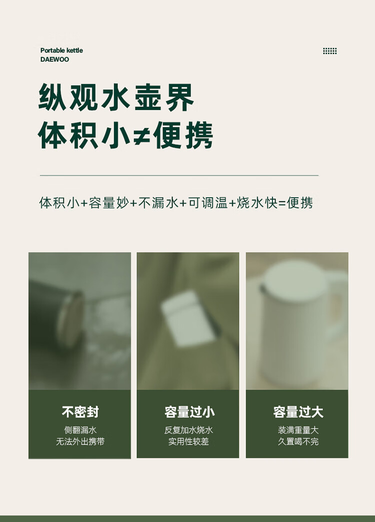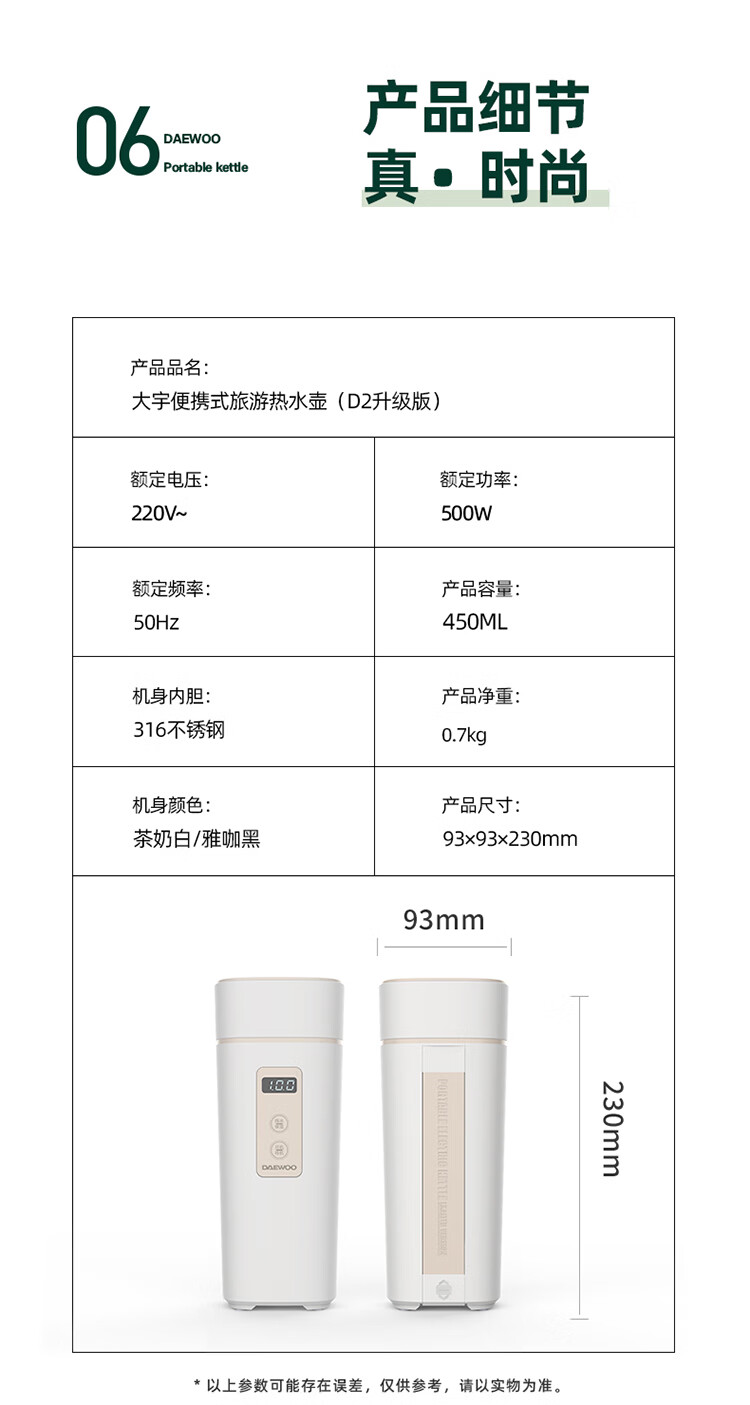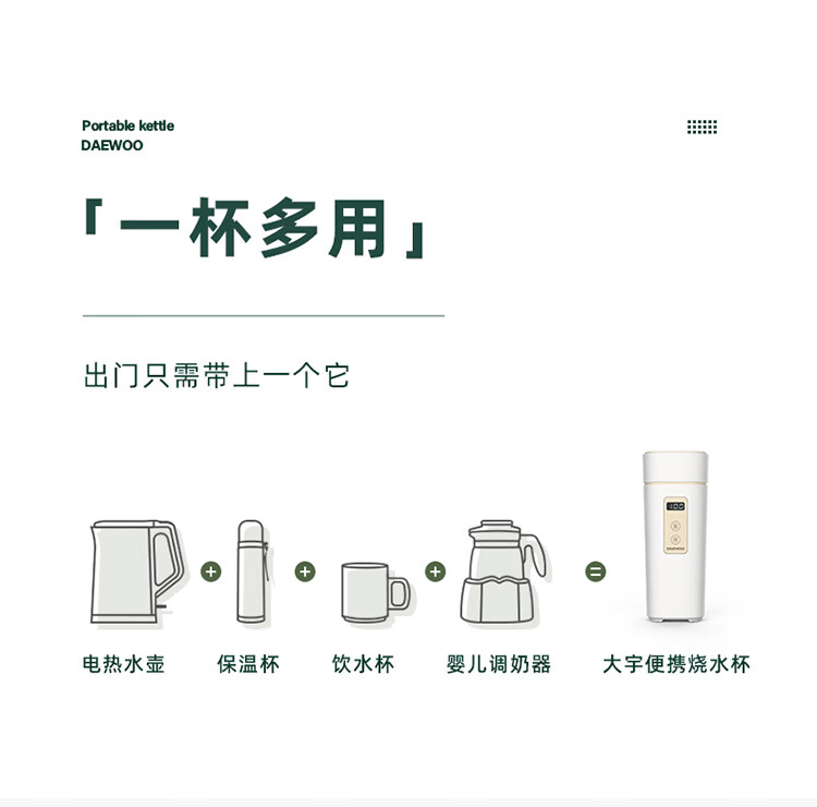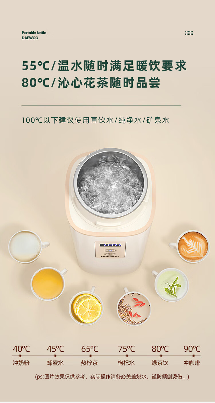 商品名称:大宇(DAEWOO)便携式电热水壶 450mL D2